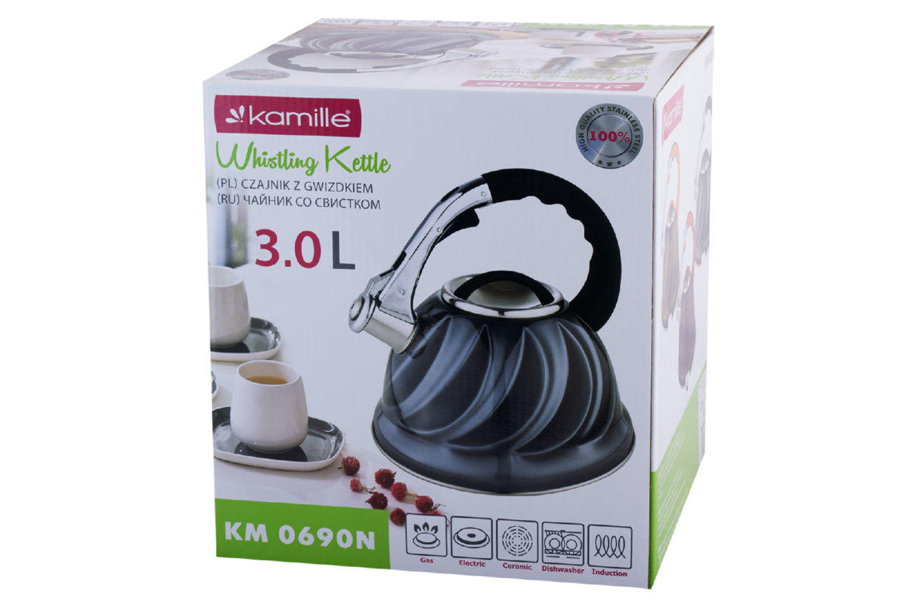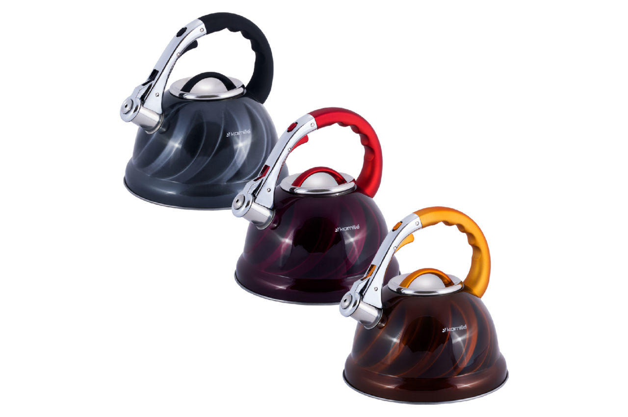 Чайник Kamille виготовлені з високоякісних матеріалів з використанням новітніх технологій виробництва, завдяки чому вони підходять для інтенсивного щоденного використання, а їх естетичний зовнішній вигляд неодмінно підійде до дизайну Вашої кухні. Матеріал: нержавіюча сталь Матеріал кришки: нержавіюча сталь Загальний об'єм: 3 л Колір: червоний, золотий, сірий