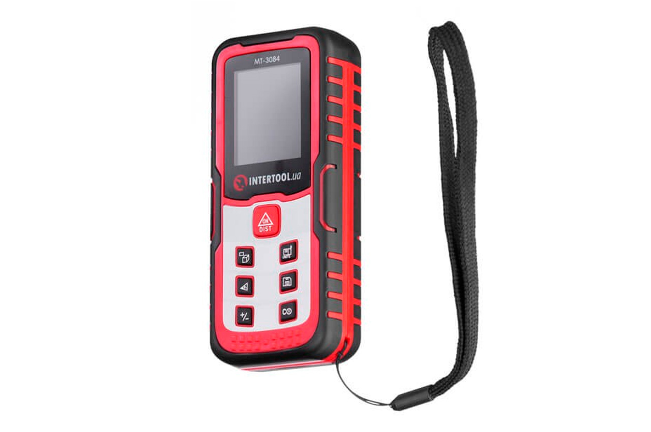 Лазерний далекомір MT-3084 має великий функціоналом, який покриває всі запити майстра в вимірі і обчисленні відстаней. Завдяки наявності функції пам'яті далекомір «запам'ятовує» останні 30 значень, що дуже зручно. Клас захисту від вологи і пилу IP54 дозволяє працювати як в приміщенні, так і на відкритому повітрі. Висока точність вимірювань і працює з дистанцією від 0,05 до 40 м з похибкою 2 мм. Ремінець в комплекті дозволить зручно носити прилад на зап'ясті або прикріпити його до сумки. Чохол вбереже від механічних пошкоджень, а також дозволить носити далекомір на поясі. Габаритні розміри: 120х53х27 мм; Клас захисту: IP54; Температура зберігання: -20 - +60 ° С; Точність вимірювання: +/- 2 мм; Пам'ять: 30 значень; Режими роботи: одиночне ізмереніенепреривное ізмереніеізмереніе площадіізмереніе об'емаізмереніе площі стін, трапеції, треугольнікаізмереніе відстаней по теоремі Піфагораізмереніе кутів, функція автоматичного вимкнення, електронний рівень; Клас лазера: 2; Потужність лазера: до 1 мВт; Довжина хвилі: 620-660 Нм; Робоча температура: -10 - +40 ° С; Діапазон вимірювання: 0.05 - 40 м; Інша: Кольоровий дисплей з підсвічуванням, звуковий сигнал, внутрішня пам'ять 30 вимірювань