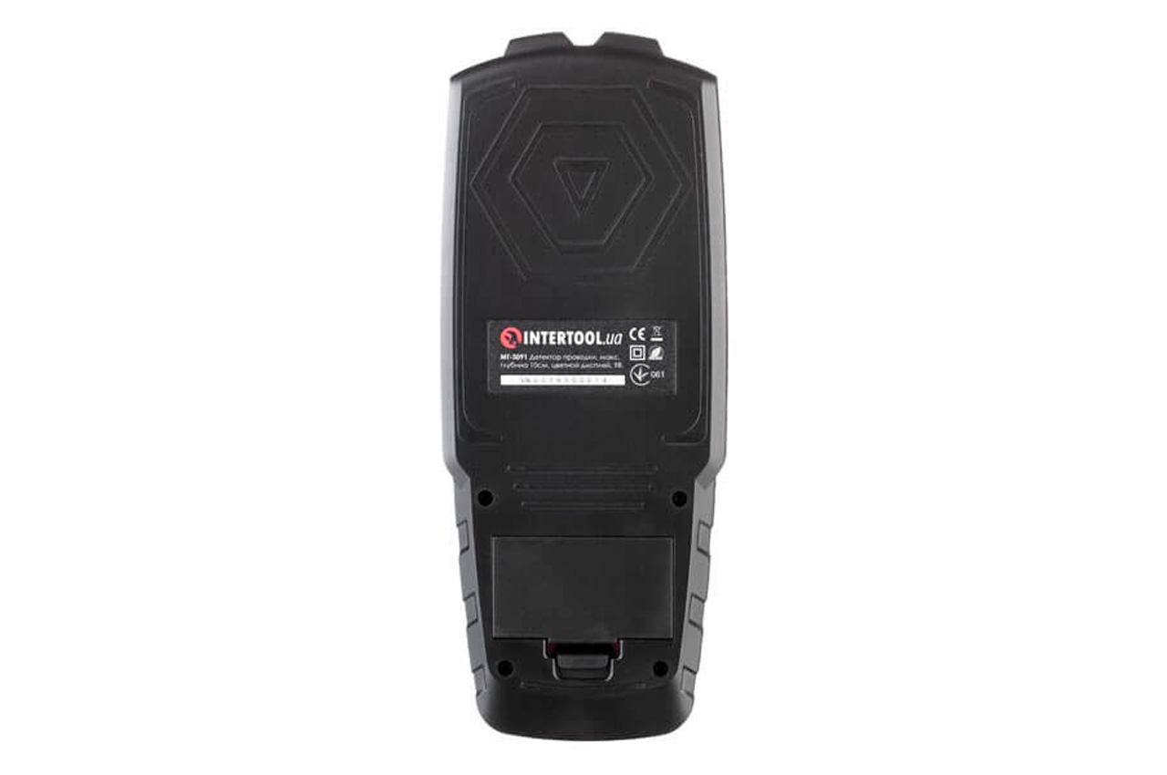 Детектор проводки - відмінний помічник під час ремонту майстрам і будівельникам-професіоналам. Це пристрій набагато полегшить, прискорить і убезпечить вашу роботу, виявляючи приховані комунікації всередині стін, підлог або стель. Дозволяє виявити в спорудах: Кольорові метали, арматуру, електричні дроти, труби (крім пластикових) Дерев'яні об'єкти Проводку під напругою 110 В, 240 В, 380 В Детектор працює на глибині до 10 см і дозволяє без ризику пошкодження проводки проводити монтажні роботи, точно вбити цвях або просвердлити отвір. Також виявляє приховані труби під плиткою, що набагато спрощує процес заміни водопроводу тощо. Особливості: Прилад простий в експлуатації і відразу після включення готовий до роботи, завдяки автоматичній калібрування Звукова індикація і світловий сигнал Визначення віддаленості від об'єкта (см) Функція електронного рівня Кольоровий дисплей з підсвічуванням для зручного перегляду результатів навіть в темних приміщеннях або ввечері на вулиці Виявляє дерево, що спрощує роботи з гіпсокартоном і знаходження вставок для монтажу вікон і дверних прорізів. Час автономної роботи - 6 годин, тип харчування «крона» 6LR61 (9В). Для максимальної зручності в комплекті поставки передбачений чохол з кріпленням до поясу. Комплектація Детектор Елемент живлення - 1 шт Інструкція Гарантійний талон Габаритні розміри: 199 * 81,5 * 20,5 мм; Особливості: звукова індикація, підсвічування кольорового екрану, автоматичне відключення 5 хв; Режими роботи: Виявлення стали, міді, проводки під напругою, дерева 100/80/50/20 мм; Напруга живлення: 9 В;