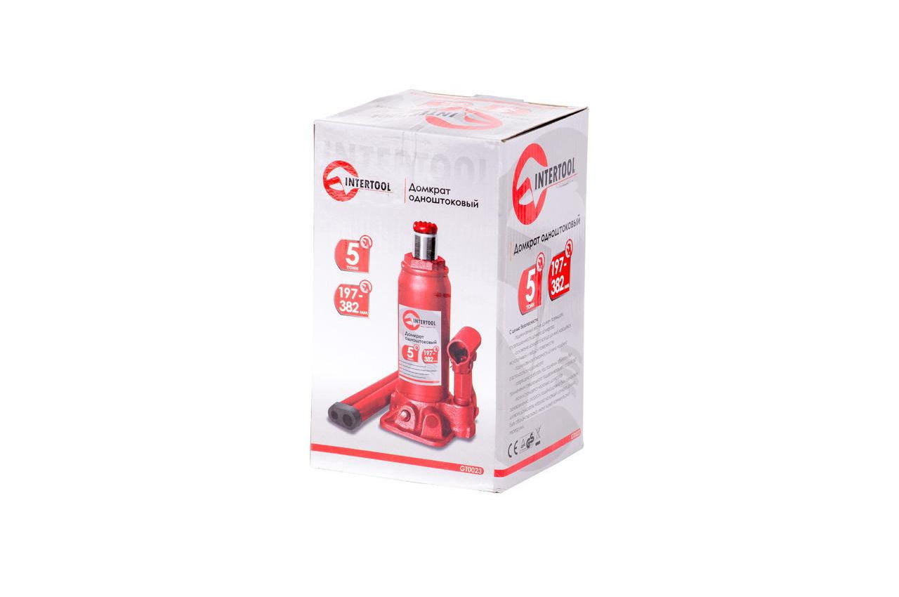 Домкрат гідравлічний GT0023 має вантажопідйомність до 5 тонн. Це обладнання найчастіше застосовують для підняття механічних транспортних засобів з метою монтажу коліс і для ремонту авто. Міцна металева конструкція і наявність плоскої платформи забезпечує максимальну стійкість і надійність в роботі, а також довгий термін експлуатації. Вантажопідйомність: 5 т; Висота підйому: 200-385 мм
