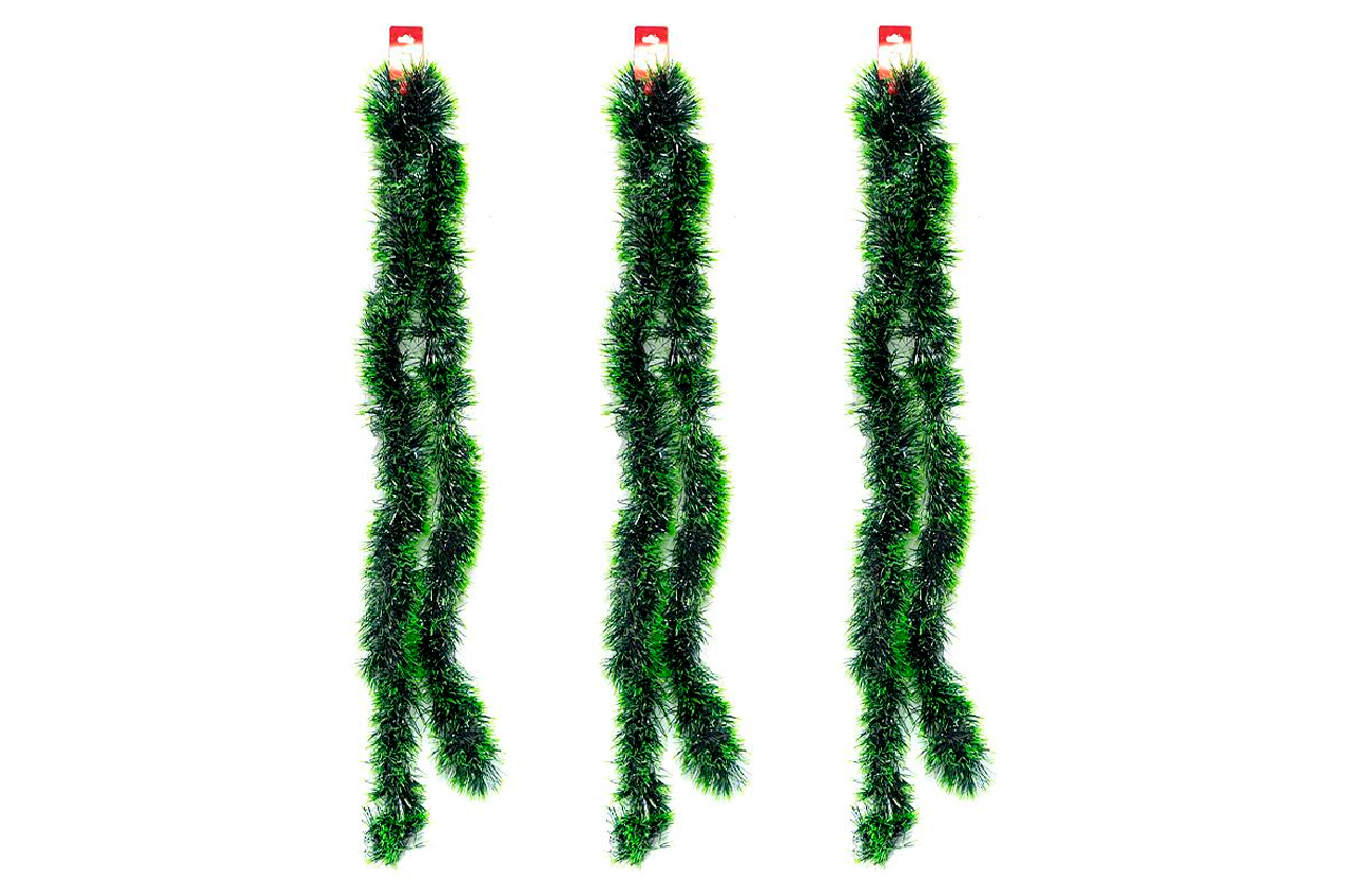 Дощик зелений "Ялинка" — стильна новорічна прикраса, що гармонійно доповнить святкове оформлення. Завдяки ширині 90 мм і довжині 2 м він виглядає об’ємно та нагадує гілочки справжньої ялинки. Глибокий зелений колір створює затишну атмосферу та підкреслює блиск іграшок і гірлянд.