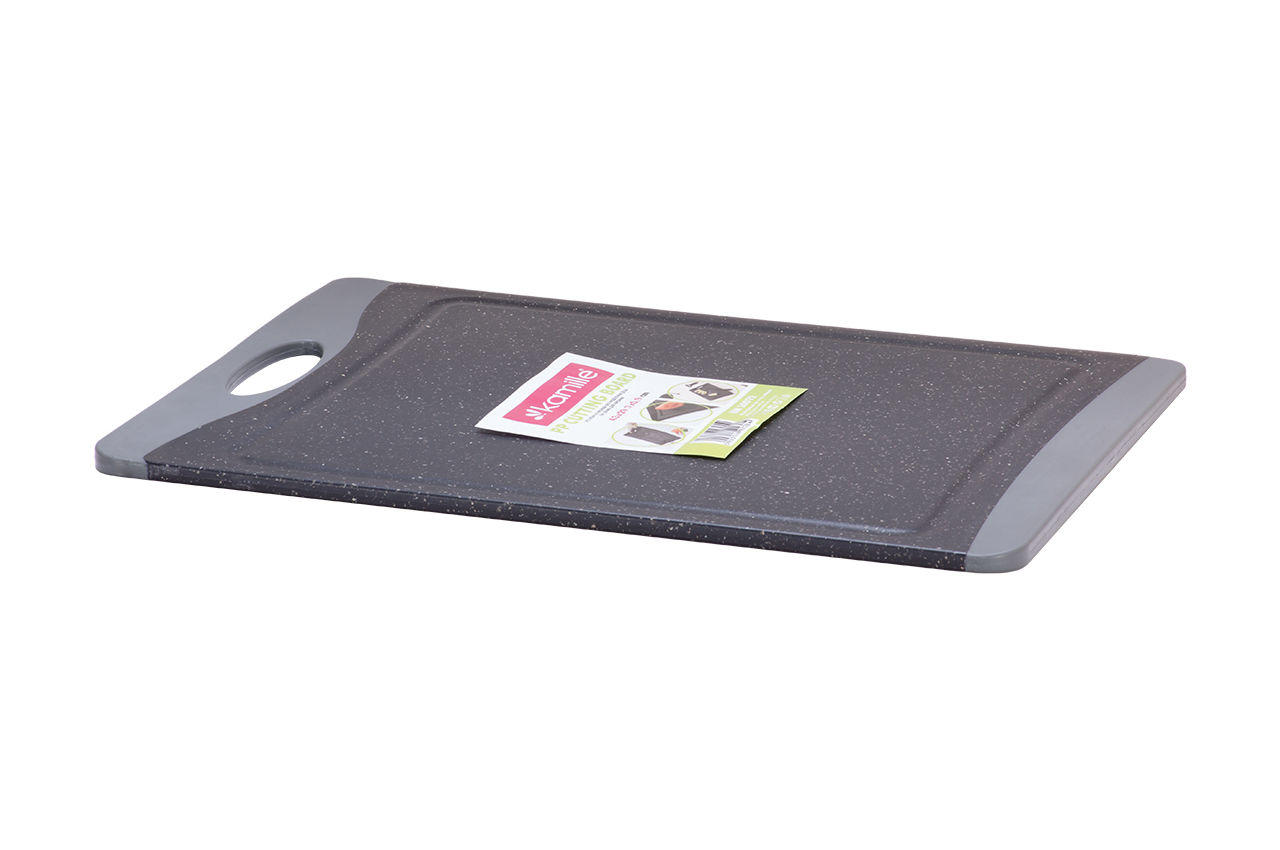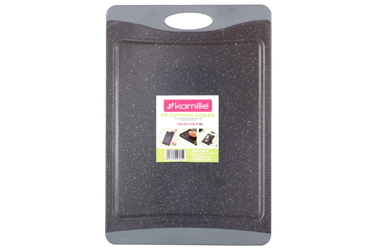 Дошка обробна Kamille - це надійний та практичний інструмент для кухні, який стане незамінним помічником під час приготування їжі. Розміри дошки — 430 мм в довжину, 297 мм в ширину та 9 мм у товщину, що дозволяє комфортно працювати з великими шматками м'яса, овочами або фруктами. Легко чиститься та має високу стійкість до пошкоджень, забезпечуючи тривалий термін служби.