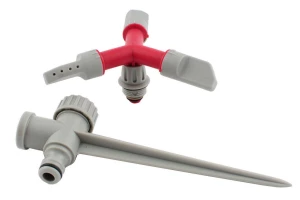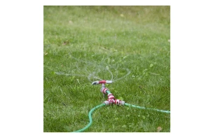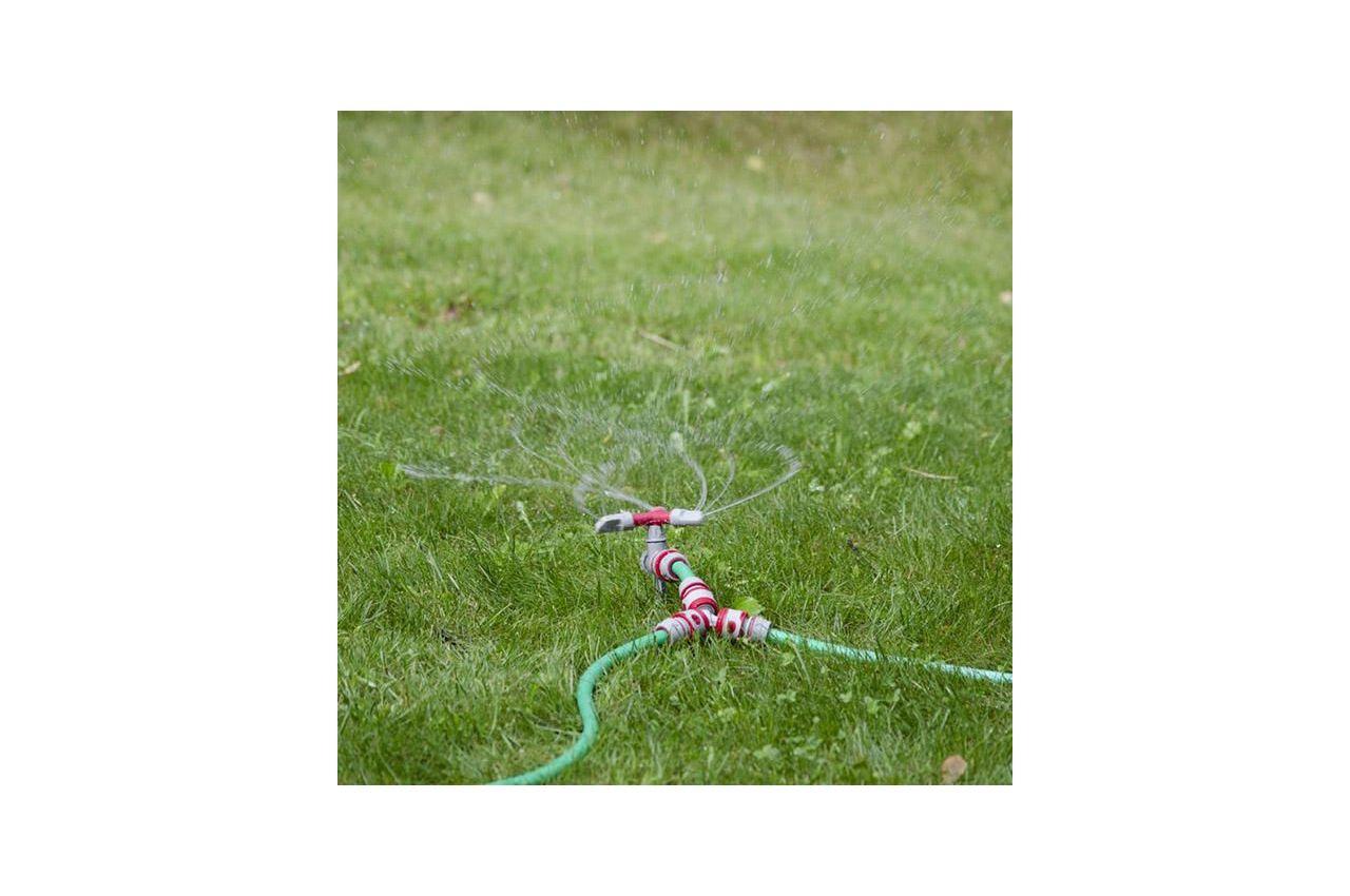 Дождеватель кругової з обертається головкою з трьох ріжків-зрошувачів, оснащений надійною металевою ніжкою-милицею, що забезпечує фіксацію в будь-якому грунті і швидке переміщення по ділянці. При необхідності поливу на великій площі, можливо з'єднання декількох дощовиків в системі поливу. Дальність поливу: до 8 м; Діаметр шланга: 1/2 "; інше: милицю з металу