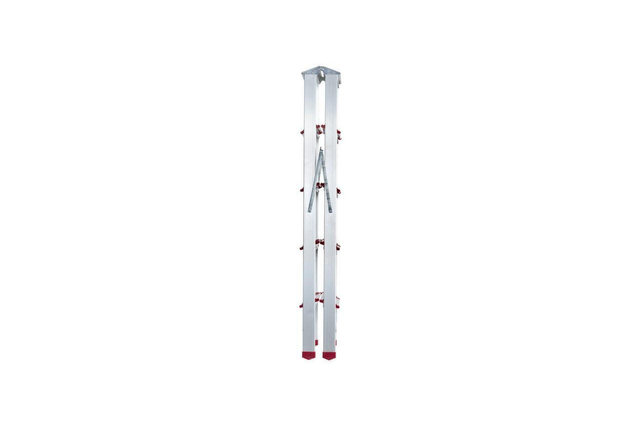 Драбина виготовлена з міцного, що не іржавіє алюмінієвого профілю. Витримує навантаження до 150 кг. Профільовані, широкі (8 см) ступені не дозволять ковзати нозі. Гарантують безпечний підйом і зручне положення під час роботи. Сходинки кріпляться до профілю численними заклепувальний сполуками. Протиковзкі опорні наконечники міцно зчіплюються з поверхнею підлоги. Верхня широка щабель, довжиною 34,5 см, шириною 16,5 см забезпечить максимум рухливості і комфорту на висоті. У складеному вигляді драбина займає небагато місця - 118х16,5 см. Ширина драбини біля основи: 460 мм; Висота в робочому стані: 1100 мм; Висота в складеному вигляді: 1180 мм; Кількість ступенів: 5; Максимальне навантаження: 150 кг