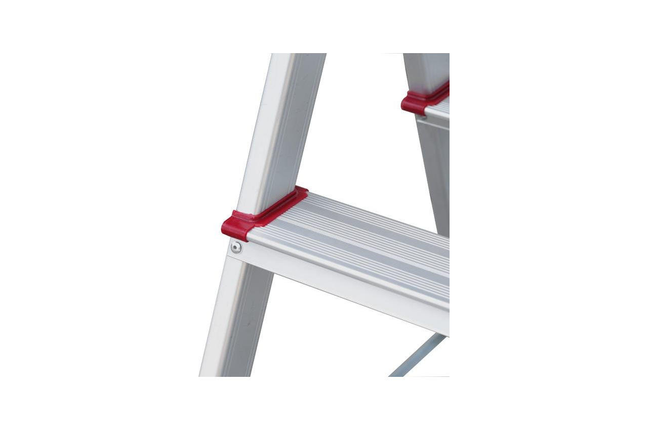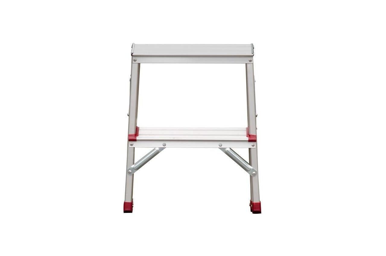 Драбина - зручна річ в побуті і незамінна на виробництві. З її допомогою легко дістати до найвищих шаф, карнизів і вікон. Просто необхідна в саду і в складних ситуаціях під час ремонту. Під безліч разів надійніше, ніж табурет. Дві робочі боку драбини дозволяють одночасно підніматися двом людям. Зручно в тих випадках, де потрібен доступ до робочої зони з різних сторін. Драбина виготовлена з міцного, що не іржавіє алюмінієвого профілю. Відповідає європейському стандарту EN131 і витримує навантаження до 150 кг. Профільовані, широкі (8 см) ступені не дозволять ковзати нозі. Гарантують безпечний підйом і зручне положення під час роботи. Сходинки кріпляться до профілю численними заклепувальний сполуками. Протиковзкі опорні наконечники міцно зчіплюються з поверхнями статі. Драбина стоїть стійко і Ви більше не боїтеся впасти. А надійні шарніри і стягнуті профілі безпеки з боків, захищають Вас від непередбаченого складання та розкладання драбини. Верхня широка щабель, довжиною 34,5 см, шириною 16,5 см забезпечить максимум рухливості і комфорту на висоті. У складеному вигляді драбина займає небагато місця - 49 х 16,5 см. Поміститься навіть в малих міських квартирах: на балконі, в коморі або навіть під ліжком. Працюйте стійко і з комфортом, навіть на висоті! Особливості Міцний алюмінієвий прямокутний профіль; Двостороння драбина з двома запобіжниками з алюмінію; Рифлені сходинки для безпечної роботи; Протиковзкі опорні наконечники для стійкості. Ширина драбини біля основи: 390 см; Висота в робочому стані: 450 см; Висота в складеному вигляді: 490 см; Кількість ступенів: 2;