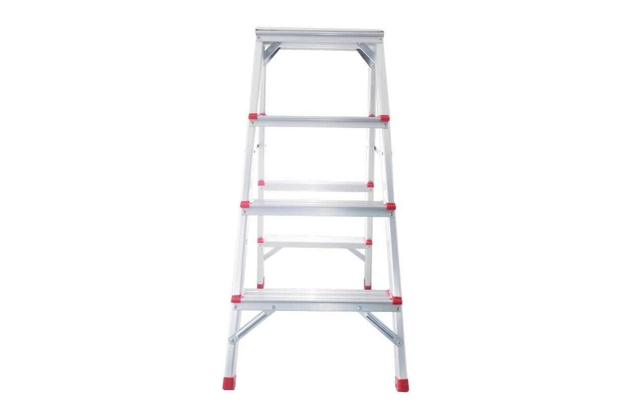 Драбина - зручна річ в побуті і незамінна на виробництві. З її допомогою легко дістати до найвищих шаф, карнизів і вікон. Просто необхідна в саду і в складних ситуаціях під час ремонту. Під безліч разів надійніше, ніж табурет. Дві робочі боку драбини дозволяють одночасно підніматися двом людям. Зручно в тих випадках, де потрібен доступ до робочої зони з різних сторін. Драбина виготовлена з міцного, що не іржавіє алюмінієвого профілю. Відповідає європейському стандарту EN131 і витримує навантаження до 150 кг. Профільовані, широкі (8 см) ступені не дозволять ковзати нозі. Гарантують безпечний підйом і зручне положення під час роботи. Сходинки кріпляться до профілю численними заклепувальний сполуками. Протиковзкі опорні наконечники міцно зчіплюються з поверхнями статі. Драбина стоїть стійко і Ви більше не боїтеся впасти. А надійні шарніри і стягнуті профілі безпеки з боків, захищають Вас від непередбаченого складання та розкладання драбини. Верхня широка щабель, довжиною 34,5 см, шириною 16,5 см забезпечить максимум рухливості і комфорту на висоті. У складеному вигляді драбина займає небагато місця - 95 х 16,5 см. Поміститься навіть в малих міських квартирах: на балконі, в коморі або навіть під ліжком. Працюйте стійко і з комфортом, навіть на висоті! Особливості Міцний алюмінієвий прямокутний профіль; Двостороння драбина з двома запобіжниками з алюмінію; Рифлені сходинки для безпечної роботи; Протиковзкі опорні наконечники для стійкості. Ширина драбини біля основи: 440 мм; Висота в робочому стані: 880 мм; Висота в складеному вигляді: 950 мм; Кількість ступенів: 4;