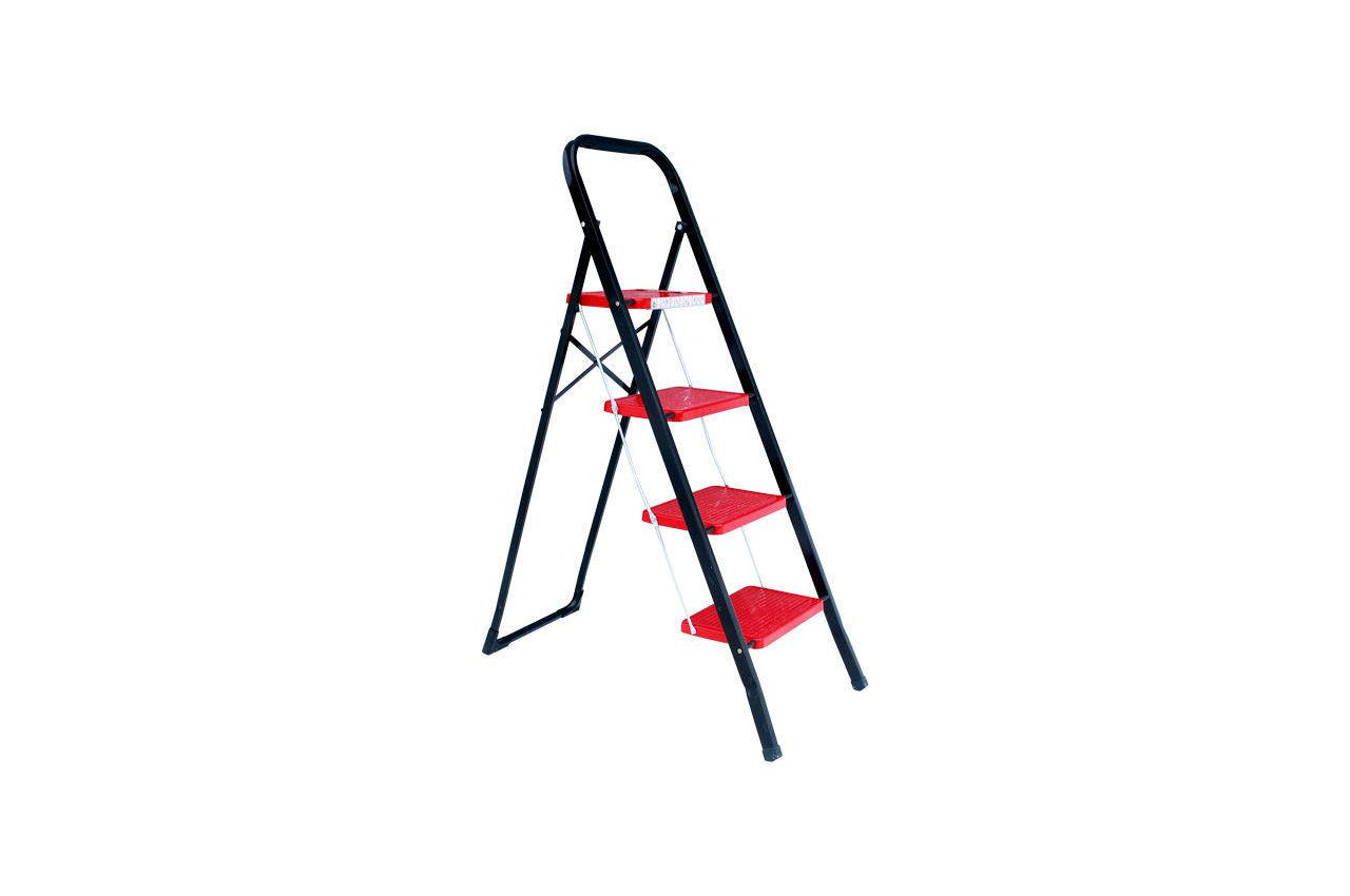 Драбина виготовлена з високоякісного прямокутного сталевого профілю. Оснащена 4 рифленими ступенями 300 * 200 мм. Висота - +1238 мм, важить - 7,5 кг. Розрахована на інтенсивне навантаження до 150 кг. Пластикові наконечники на ніжках запобігають ковзанню і не дряпають опорну поверхню. Стійка, компактна в зберіганні. Профіль: сталевий прямокутний; Кількість ступенів: 4 од .; Розмір ступені: 300x200 мм; Максимальне навантаження: 150 кг