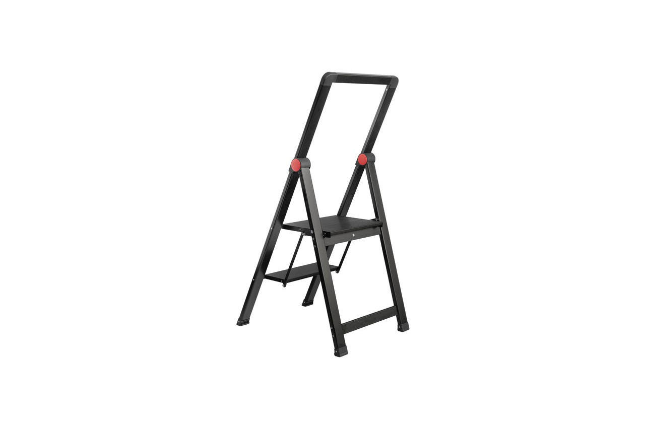 Драбина "Black Slim" STORM - це унікальне поєднання міцності, практичності і простоти. Сучасна, модна, супер легка, компактна, зручна і безпечна драбина стане в нагоді в будинку, для офісу, дачі, робочого простору і для будь-яких робіт по господарству! На драбину поширюється гарантія якості - 3 роки! Відрізняється витонченим дизайном, який доповнить інтер'єр вашого приміщення і створить фешенебельну атмосферу в залі, на кухні, у ванній, в спальні і в будь-який інший кімнаті. Неймовірно стійка, можна навантажувати до 150 кг Стремянка виготовлена з надміцного, легкого, стійкого до появи корозії алюмінієвого профілю. Модель розрахована на тривалий термін служби і відповідає європейському стандарту якості EN 14183. Витримує навантаження до 150 кг. Широка і неймовірно стійка платформа. На ній можна стояти і працювати Сходинки драбини збільшеного розміру для відмінною стійкості і неперевершеного комфорту в роботі. Ширина верхньої платформи 335 мм, дозволяє без побоювання стояти на драбині і вільно працювати. Поручень безпеки збільшує стійкість на верхньому щаблі. Протиковзкі ступені і гумові черевики - безпека для вас і для підлогових покриттів Поверхні ступенів профільовані, рифлені проти ковзання. Така конструкція дозволяє вам почувати себе більш впевнено, піднімаючись по сходах, і гарантує безпеку під час роботи! На ніжках драбини розміщені опорні гумові черевики для надійного зчеплення з поверхнею підлоги. Вони також захищають ламінат, плитку і будь-які інші покриття підлоги від механічних пошкоджень під час експлуатації сходів. Ультра тонка в складеному вигляді для компактного зберігання - 5.5 см. Зберігайте де завгодно Каркас і ступені драбини компактно складаються для зручного зберігання. Ви можете розпрощатися з масивними табуретами і сходами, які займають занадто багато місця. Габарити у робочому положенні: 1058*466*580 мм; Габарити у складеному вигляді: 1163*466*55 мм; Висота до верхнього ступеня: 456 мм; Ширина платформи: 335 мм; Кількість ступенів: 2 шт