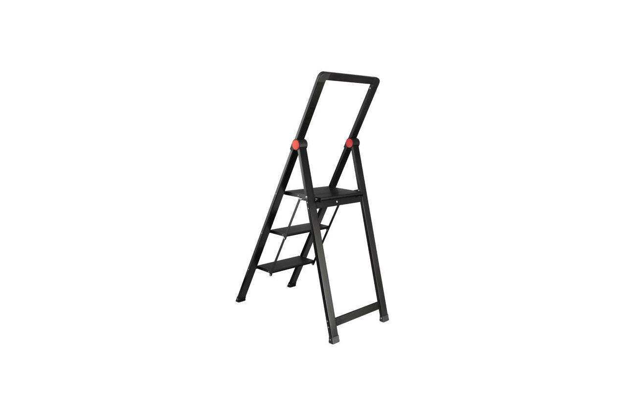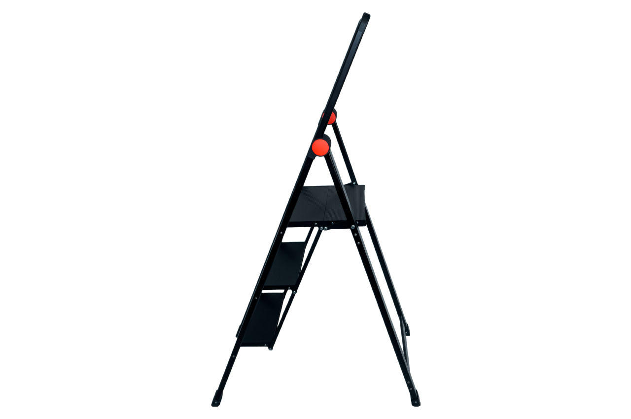 Драбина "Black Slim" STORM - це унікальне поєднання міцності, практичності і простоти. Сучасна, модна, супер легка, компактна, зручна і безпечна драбина стане в нагоді в будинку, для офісу, дачі, робочого простору і для будь-яких робіт по господарству! На драбину поширюється гарантія якості - 3 роки! Відрізняється витонченим дизайном, який доповнить інтер'єр вашого приміщення і створить фешенебельну атмосферу в залі, на кухні, у ванній, в спальні і в будь-який інший кімнаті. Неймовірно стійка, можна навантажувати до 150 кг Стремянка виготовлена з надміцного, легкого, стійкого до появи корозії алюмінієвого профілю. Модель розрахована на тривалий термін служби і відповідає європейському стандарту якості EN 14183. Витримує навантаження до 150 кг. Широка і неймовірно стійка платформа. На ній можна стояти і працювати Сходинки драбини збільшеного розміру для відмінною стійкості і неперевершеного комфорту в роботі. Ширина верхньої платформи 335 мм, дозволяє без побоювання стояти на драбині і вільно працювати. Поручень безпеки збільшує стійкість на верхньому щаблі. Протиковзкі ступені і гумові черевики - безпека для вас і для підлогових покриттів Поверхні ступенів профільовані, рифлені проти ковзання. Така конструкція дозволяє вам почувати себе більш впевнено, піднімаючись по сходах, і гарантує безпеку під час роботи! На ніжках драбини розміщені опорні гумові черевики для надійного зчеплення з поверхнею підлоги. Вони також захищають ламінат, плитку і будь-які інші покриття підлоги від механічних пошкоджень під час експлуатації сходів. Ультра тонка в складеному вигляді для компактного зберігання - 5.5 см. Зберігайте де завгодно Каркас і ступені драбини компактно складаються для зручного зберігання. Ви можете розпрощатися з масивними табуретами і сходами, які займають занадто багато місця. Габарити драбини в складеному вигляді дуже компактні (1413 * 466 * 55 мм), це дозволяє зберігати її де завгодно: в шафі, під ліжком, за меблями або дверима, а також скрізь, де вам підкаже фантазія. Легка вага. Переносите з місця на місце в одній руці Драбина легка (5,3 кг), зручна в зверненні і безпечна. Навіть дитині або тендітній жінці не складе труднощів перенести драбину в одній руці, скласти або встановити її в робоче положення! Габарити в робочому положенні: 1287 * 466 * 750 мм; Габарити в складеному вигляді: 1413 * 466 * 55 мм; Висота до верхнього ступеня: 684 мм; Ширина платформи: 335 мм;