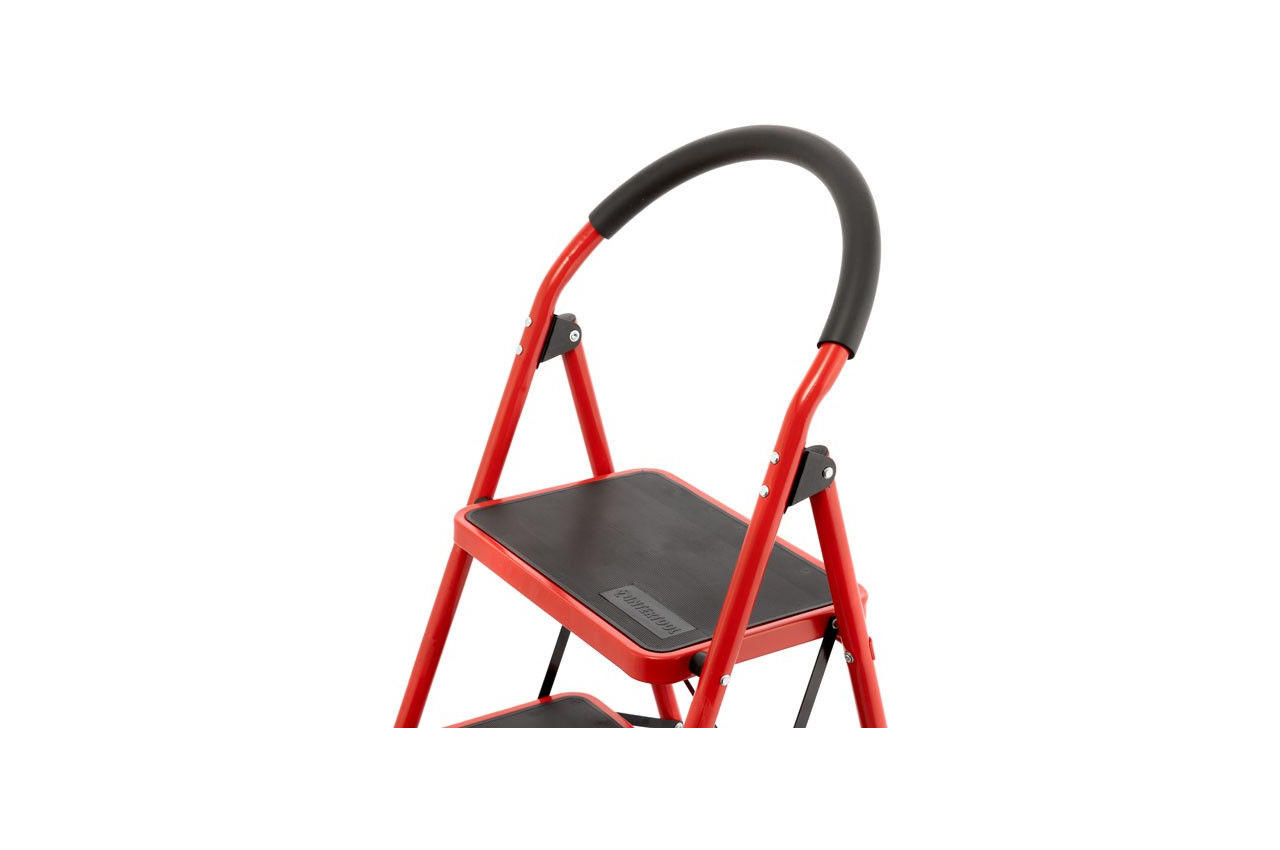 Драбина відрізняється своєю багатофункціональністю, стійкістю і міцністю. Широко застосовуються для виконання будівельних, оздоблювальних і господарських робіт: при фарбуванні стелі, стін, наклеювання шпалер, заміну лампочок, зборі врожаю з дерев і т.п. Виготовлена з надійного сталевого круглого профілю, витримує навантаження до 150 кг. Відповідає європейському стандарту EN14183. Сходинки широкі (38 х 26 см) і надійні, на них ви не боїтеся впасти. Вони покриті нековзними гумовими накладками, ви стоїте стійко! Також є система безпеки для захисту від випадкового складання драбини під час роботи (на останньому щаблі є спеціальний металевий гак, який фіксує відкидні частина). Ніжки оснащені пластиковими черевиками проти ковзання. Драбина легко складається і займає зовсім небагато місця. Зі своїми габаритами (150х45х2.5 см) поміститися в комору, на балкон, за дверима і навіть під ліжком! На драбину зручно підніматися і переносити її, завдяки м'якому, великому округлому поручня. Особливості Стійка - задня опора посилена діагоналями жорсткості; Сталева конструкція забезпечить драбині міцність і довговічність; Надійне кріплення ступенів. Висота до верхнього ступеня: 972 мм; Кількість ступенів: 4; Розмір ступені: 380 * 260 мм; Профіль: сталевий круглий; Максимальне навантаження: 150 кг Висота до верхнього ступеня: 972 мм; Кількість ступенів: 4; Розмір ступені: 380 * 260 мм; Профіль: сталевий круглий; Максимальне навантаження: 150 кг Висота до верхнього ступеня: 972 мм; Кількість ступенів: 4; Розмір ступені: 380 * 260 мм; Профіль: сталевий круглий; Максимальне навантаження: 150 кг