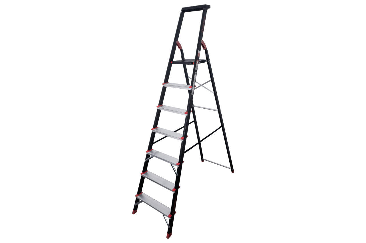 Драбина зі сталевим профілем допоможе в побуті і на виробництві. З її допомогою ви легко дістанете до найвищих шаф, карнизів і вікон. Просто необхідна річ в саду або під час ремонту. Така драбина у безліч разів надійніше, ніж табурет. Сталевий профіль з безпечними ступенями Драбина виготовлена з міцного сталевого профілю з алюмінієвими ступенями. Рифлені щаблі не дозволять ковзати нозі і забезпечують безпечний підйом, а також зручне положення під час роботи. Драбина відповідає європейському стандарту EN131 і витримує навантаження до 150 кг. Широка верхня ступінь-платформа Виготовлена із сталевого профілю, має габарити 250 * 250 мм для комфортної роботи на висоті. Дозволяє безпечно знаходиться на найвищій точці драбини. Лоток для інвентарю Поручні безпеки оснащені лотком для інвентарю для розміщення негабаритного інструменту. Тепер у вас все під рукою і більше не потрібно просити когось подавати вам викрутки, плоскогубці або дриль. Протиковзкі опорні наконечники Міцно зчіплюються з будь-якими поверхнями підлоги і не пошкоджують покриття для підлоги. Драбина стоїть стійко і ви не боїтеся впасти. Надійні захищені з'єднання ступенів і профілю, поручні, стягнуті профілі і ремені роблять конструкцію сходів стійкою і безпечною. Профіль: сталевий прямокутний; Кількість ступенів: 7 од .; Висота до платформи: 1500 мм; Максимальне навантаження: 150 кг; Габарити в робочому положенні: 504 * 1283 * 2003 мм; Габарити в складеному вигляді: 504х110х2200 мм плоскогубці або дриль. Протиковзкі опорні наконечники Міцно зчіплюються з будь-якими поверхнями підлоги і не пошкоджують покриття для підлоги. Драбина стоїть стійко і ви не боїтеся впасти. Надійні захищені з'єднання ступенів і профілю, поручні, стягнуті профілі і ремені роблять конструкцію сходів стійкою і безпечною. Профіль: сталевий прямокутний; Кількість ступенів: 7 од .; Висота до платформи: 1500 мм; Максимальне навантаження: 150 кг; Габарити в робочому положенні: 504 * 1 283 * 2003 мм; Габарити в складеному вигляді: 504х110х2200 мм плоскогубці або дриль. Протиковзкі опорні наконечники Міцно зчіплюються з будь-якими поверхнями підлоги і не пошкоджують покриття для підлоги. Драбина стоїть стійко і ви не боїтеся впасти. Надійні захищені з'єднання ступенів і профілю, поручні, стягнуті профілі і ремені роблять конструкцію сходів стійкою і безпечною. Профіль: сталевий прямокутний; Кількість ступенів: 7 од .; Висота до платформи: 1500 мм; Максимальне навантаження: 150 кг; Габарити в робочому положенні: 504 * +1283 * 2003 мм; Габарити в складеному вигляді: 504х110х2200 мм