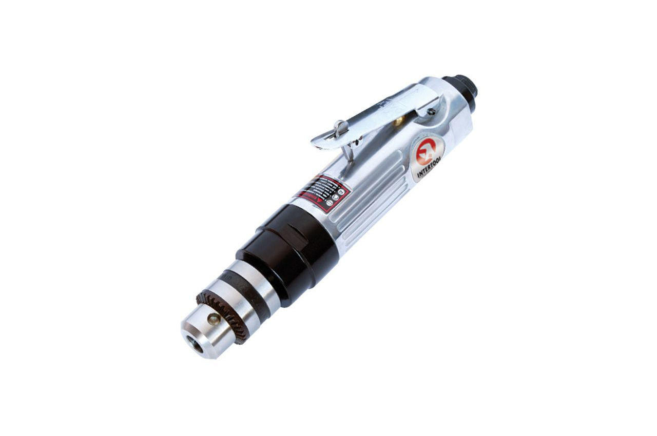 Дриль пневматична міні. Професійна пневматична пряма дриль. Оснащена металевим патроном під ключ з можливістю захоплення хвостовиків свердел від 1,5 до 10 мм. Має компактний корпус і малу вагу. Принцип роботи нічим не відрізняється від звичайних електричних прямих дрилів, але замість електричного двигуна використовується крильчатка і стиснене повітря. Для коректної і максимально довгої роботи рекомендується використовувати її з повітряним фільтром і лубрикатори, для очищення повітря від непотрібних домішок і насичення його маслом для змащення рухомих деталей інструменту. Робочий тиск: до 6 атм; Швидкість обертання: 2500 об / хв; Витрата повітря: 170 л / хв; Патрон: 1.5-10 мм; Діаметр шланга: 8-10 мм