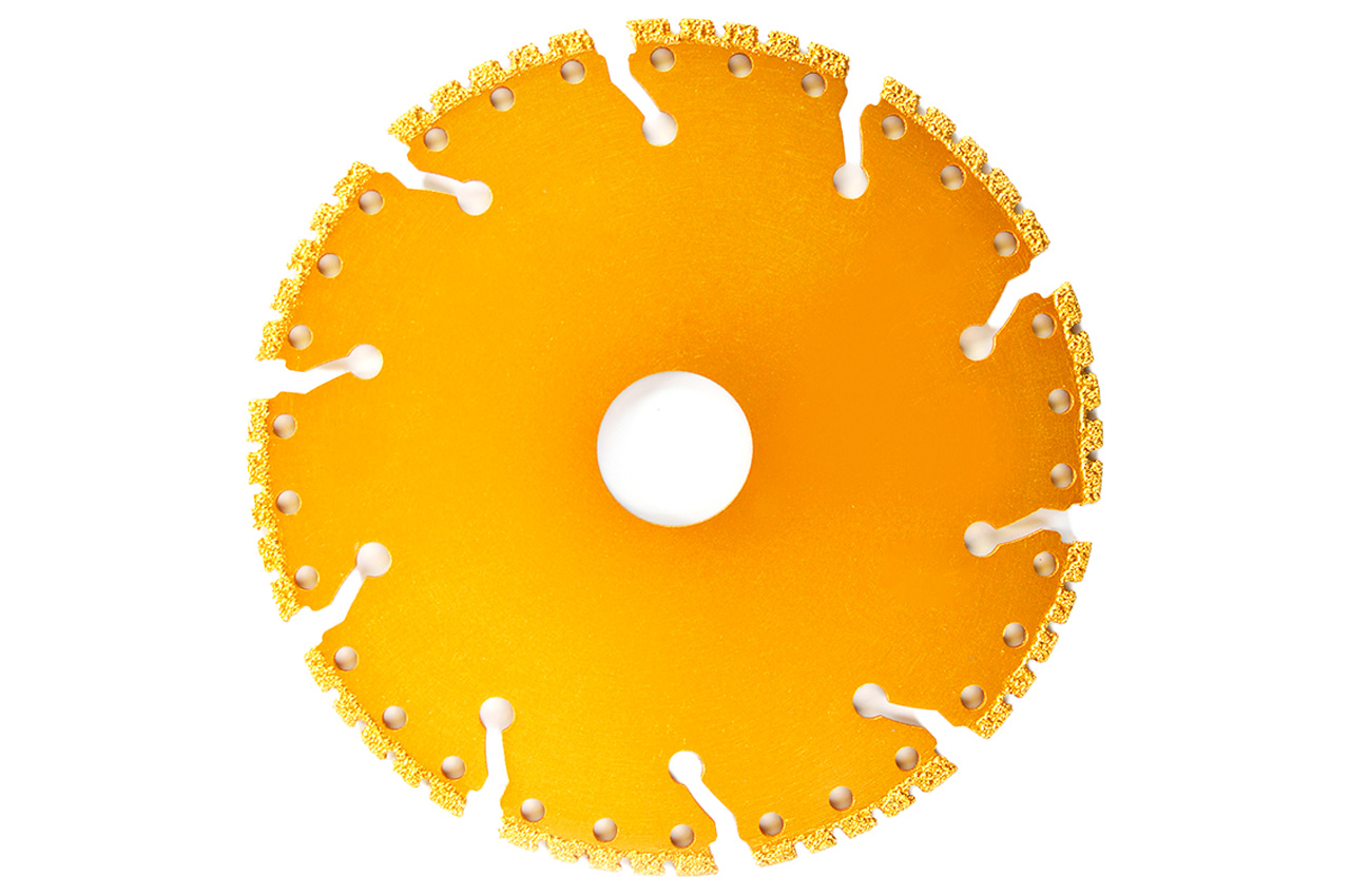 Алмазна крихта утримується на металевому корпусі і має дуже гострі грані для миттєвого різання всіх будівельних матеріалів. Безліч тепловідвідних пазів та отворів у корпусі алмазного кола дає можливість добре охолоджувати диск у процесі різання на болгарці або бензорезі всіх будівельних матеріалів.