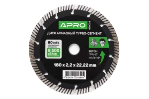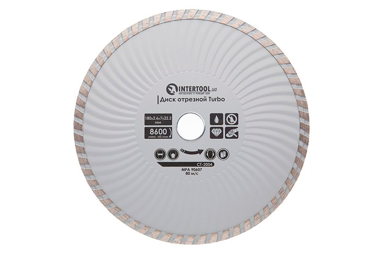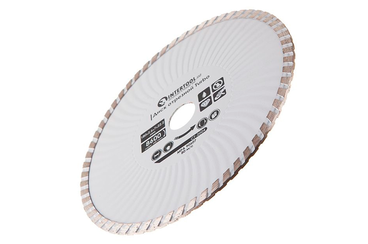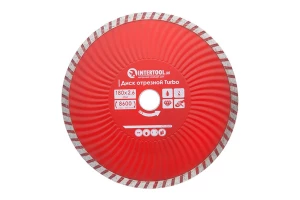 Алмазний диск відрізний "Intertool" призначений для використання на УШМ з високою швидкістю обертання, а також з бензиновими різьбярами і ручними відрізними машинами. Перевагою даних дисків є більш висока швидкість різання при роботах з каменем, цеглою і бетоном. Наявність спеціальних каналів допомагає швидко відводити пил з області різання. Сам диск і алмазоносний шар відрізного кола гофровані, що дозволяє витримувати серйозну силову і теплове навантаження. Диск можна використовувати як для мокрого типу різання, так і для сухого. Насиченість діамантовою крихтою до 18%. Діаметр диска 180 мм. Розмір отвору 22.2 мм. Застосування: для цегли, каменю і бетону; Діаметр диска: 180 мм; Висота кромки: 7 мм; Ширина кромки: 2.6 мм; Насиченість діамантовою крихтою: 16-18%; Діаметр отвору: 22 мм