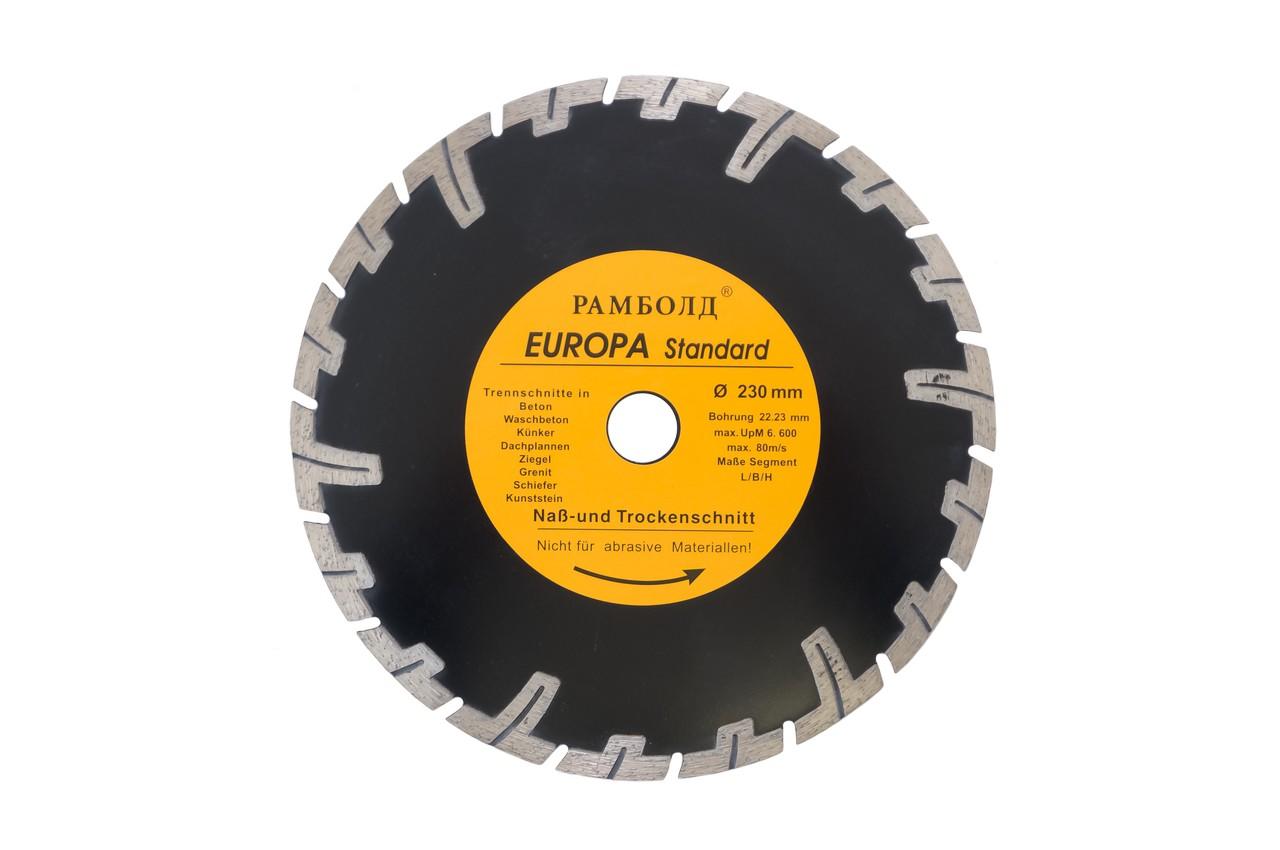 Алмазний диск Рамболд призначений для сухого або мокрого різання будматеріалів, таких як армований бетон, цегла, кераміка, камінь, граніт, піщаник. Використовується в УШМ, ручному електричного плиткоріз, штроборізи. Діаметр диска 230 мм; Діаметр кріплення 22,2 мм.