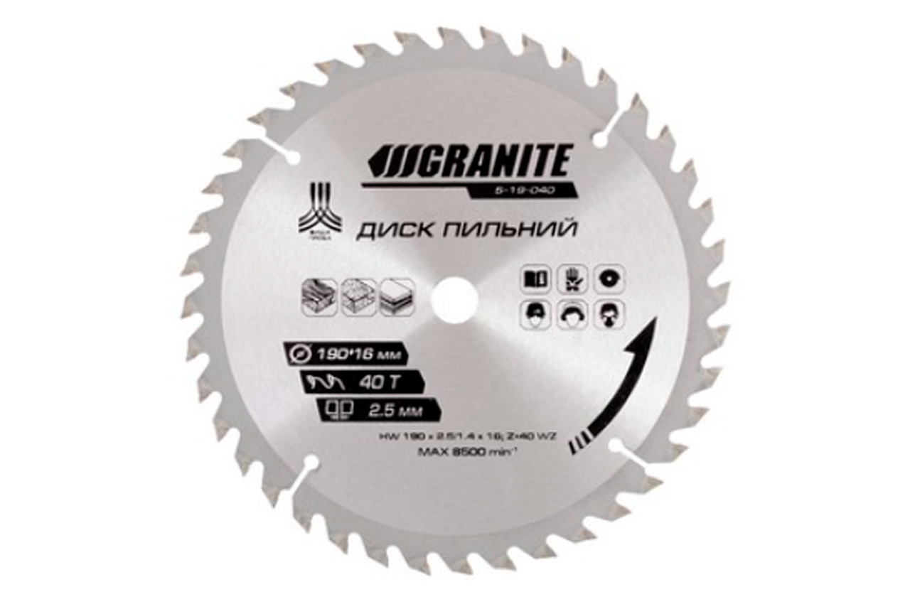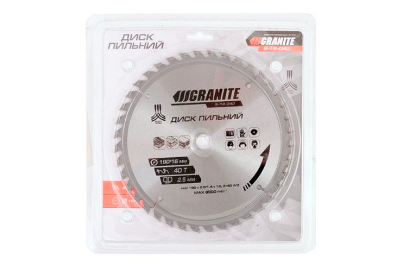 Диск пильний Granite - 190 x 40T x 16 мм (5-19-040)172,00