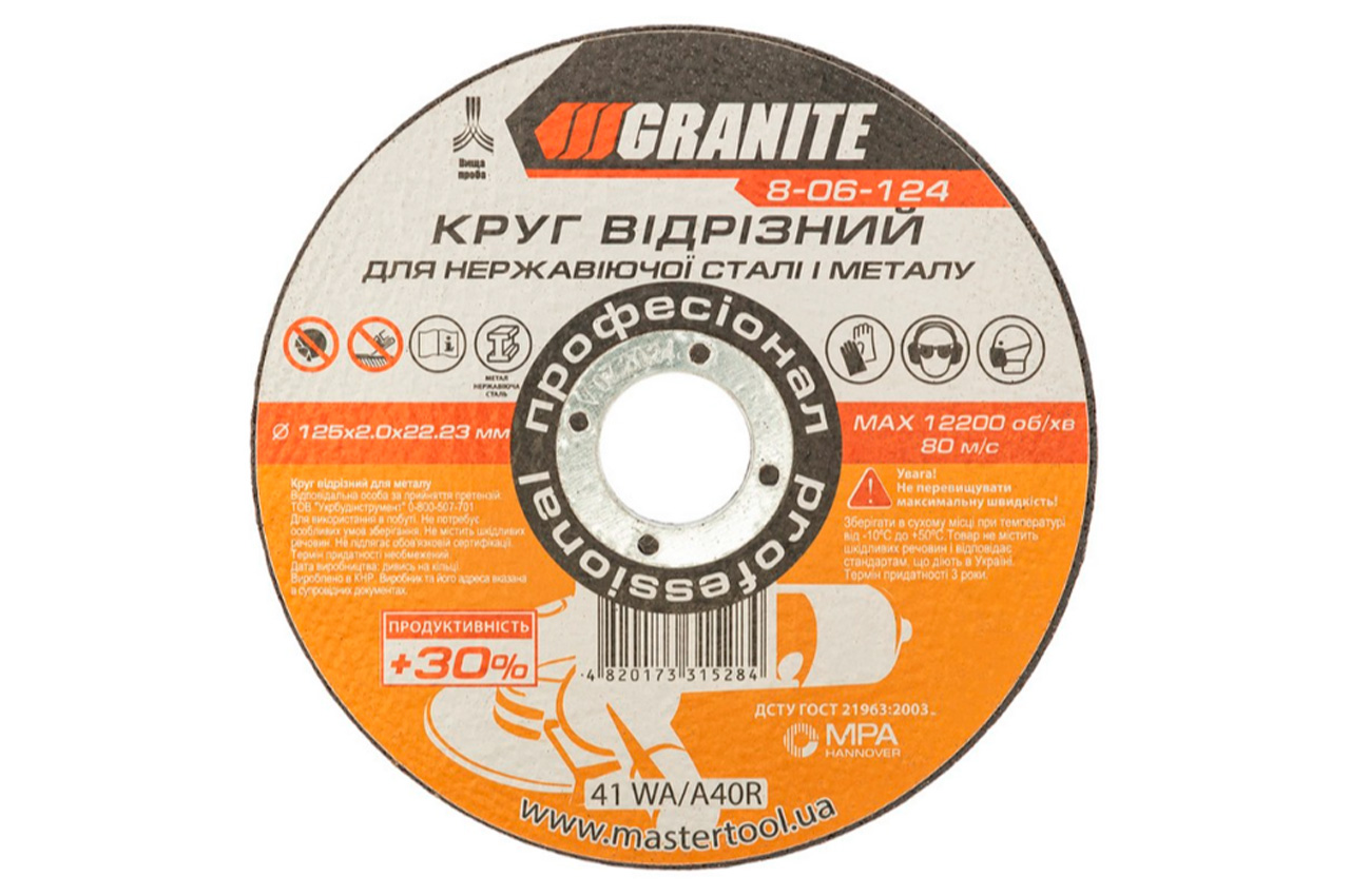 Диск відрізний по металу Granite - 125 х 2,0 х 22,2 мм + 30%