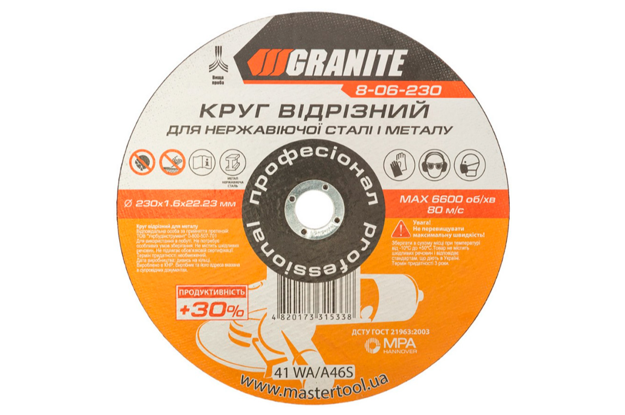 Диск відрізний по металу Granite - 230 х 1,6 х 22,2 мм + 30%