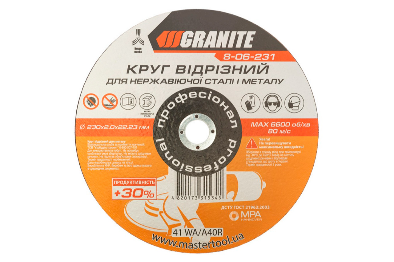Диск відрізний по металу Granite - 230 х 2,0 х 22,2 мм + 30%