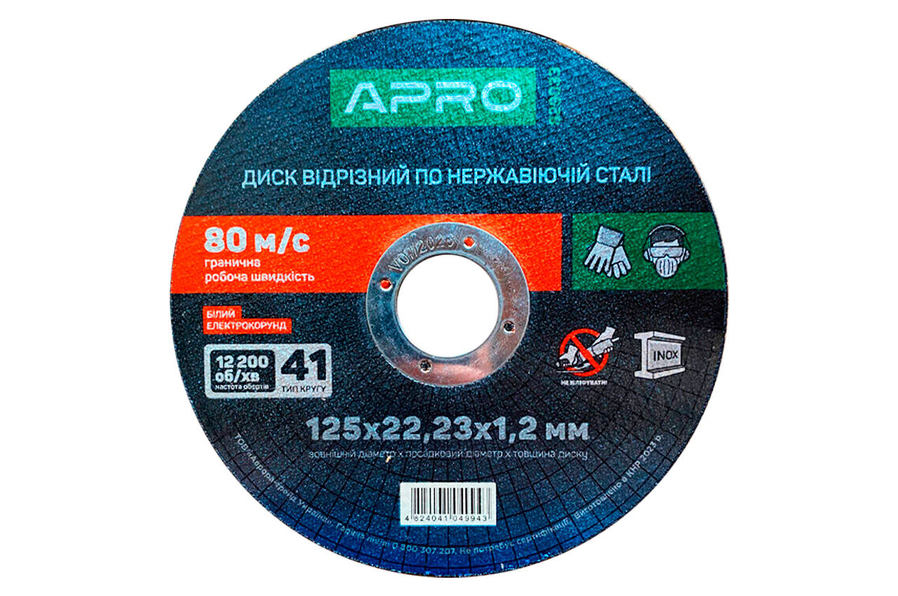 Диск відрізний по нержавіючій сталі Apro - 125 х 1,2 х 22,23мм