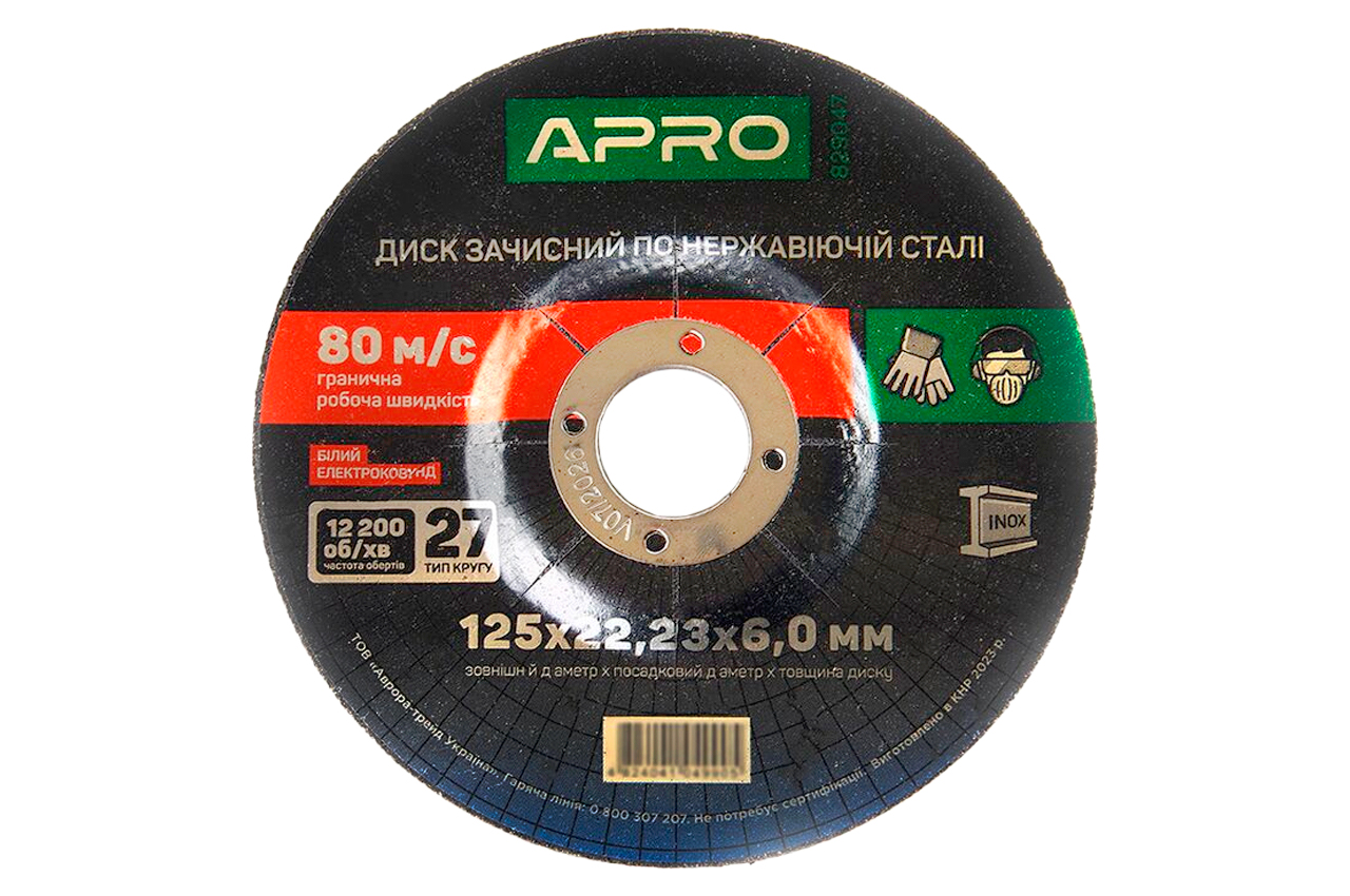 Диск зачистний по нержавіючій сталі Apro - 125 х 6 х 22,23мм