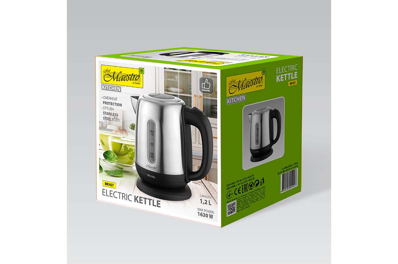 Maestro MR-027 - це надійний і простий в обслуговуванні чайник, який подбає, щоб приготування вашого улюбленого напою забирало мінімум часу. Для цього він обладнаний 1630 Вт вбудованої потужності, що гарантує швидке закипання води. Крім того, зручний перемикач та гранично тиха робота зроблять експлуатацію максимально комфортною. Розробники обладнали модель знімним фільтром від накипу, який подбає, щоб чайник та вода залишалися чистими. При цьому зручна кришка з великим отвором дозволить легко наповнювати та очищати чайник. Завдяки основі з нержавіючої сталі чайник не боїться механічних пошкоджень, корозії та легко очищається. Прихований нагрівальний елемент забезпечить довгий експлуатаційний термін, а об'єм 1,2 літра дозволить приготувати потрібну кількість кави за один робочий цикл.
