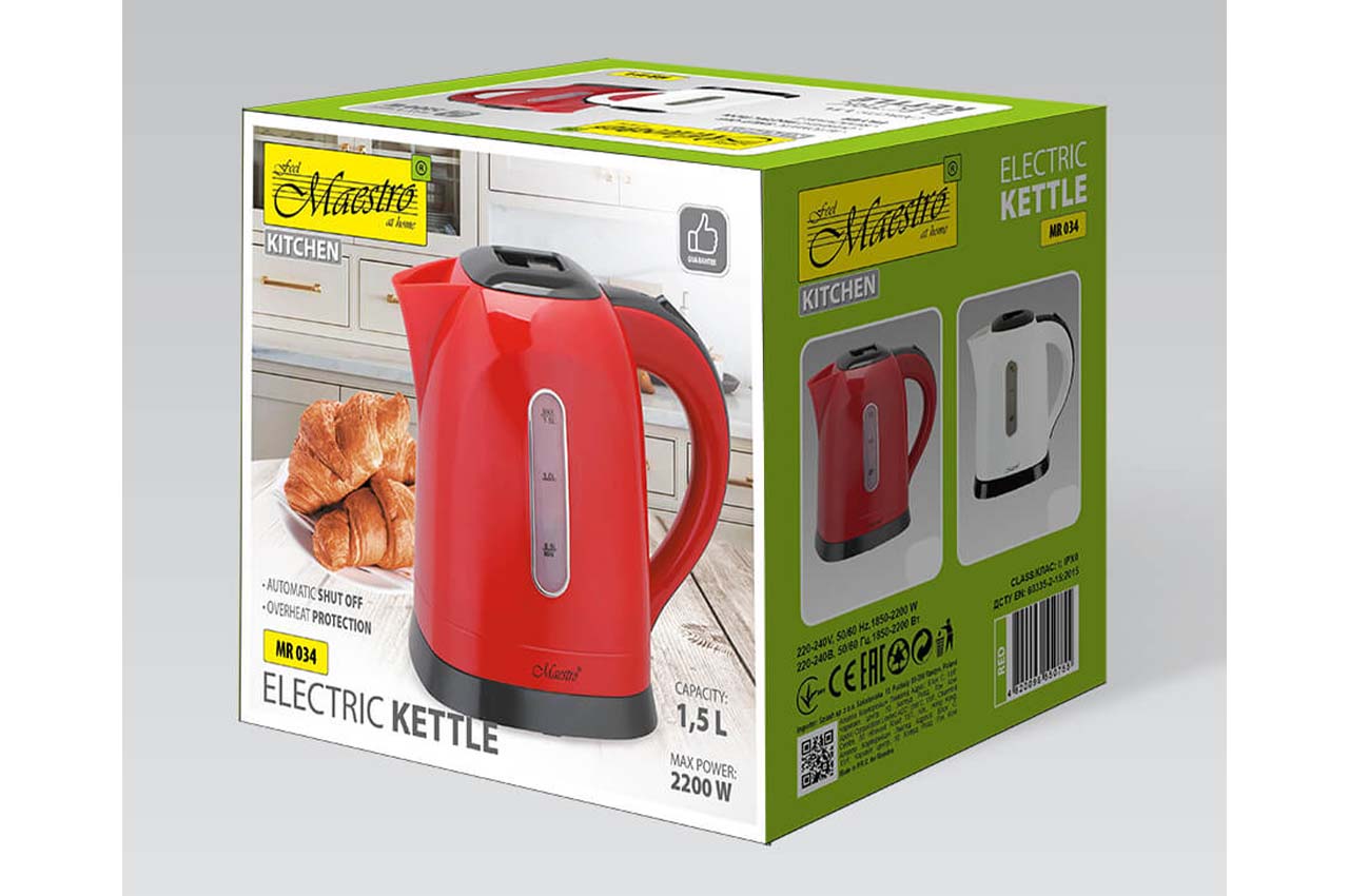 Електрочайник Maestro MR-034 відрізняється стильним дизайном, максимальним комфортом під час експлуатації та розширеним функціоналом. Він має стильний дизайн та доречний на будь-якій кухні. Виготовлений із високоміцного пластику, захищеного від механічних пошкоджень та деформацій. Нагрівальний елемент має вбудований тип, що дозволяє кип'ятити воду майже миттєво. Об'єм складає 1,5 л. Мінімальна робоча кількість води – це дві чашки кави або чаю, яким можна насолодитися за лічені хвилини. Як і багато інших аналогічних приладів електрочайник має фільтр для води. В даному випадку, він має знімну конструкцію, що дозволяє легко очищати його за допомогою звичайних засобів для чищення або миючих засобів, наявних на кожній кухні.