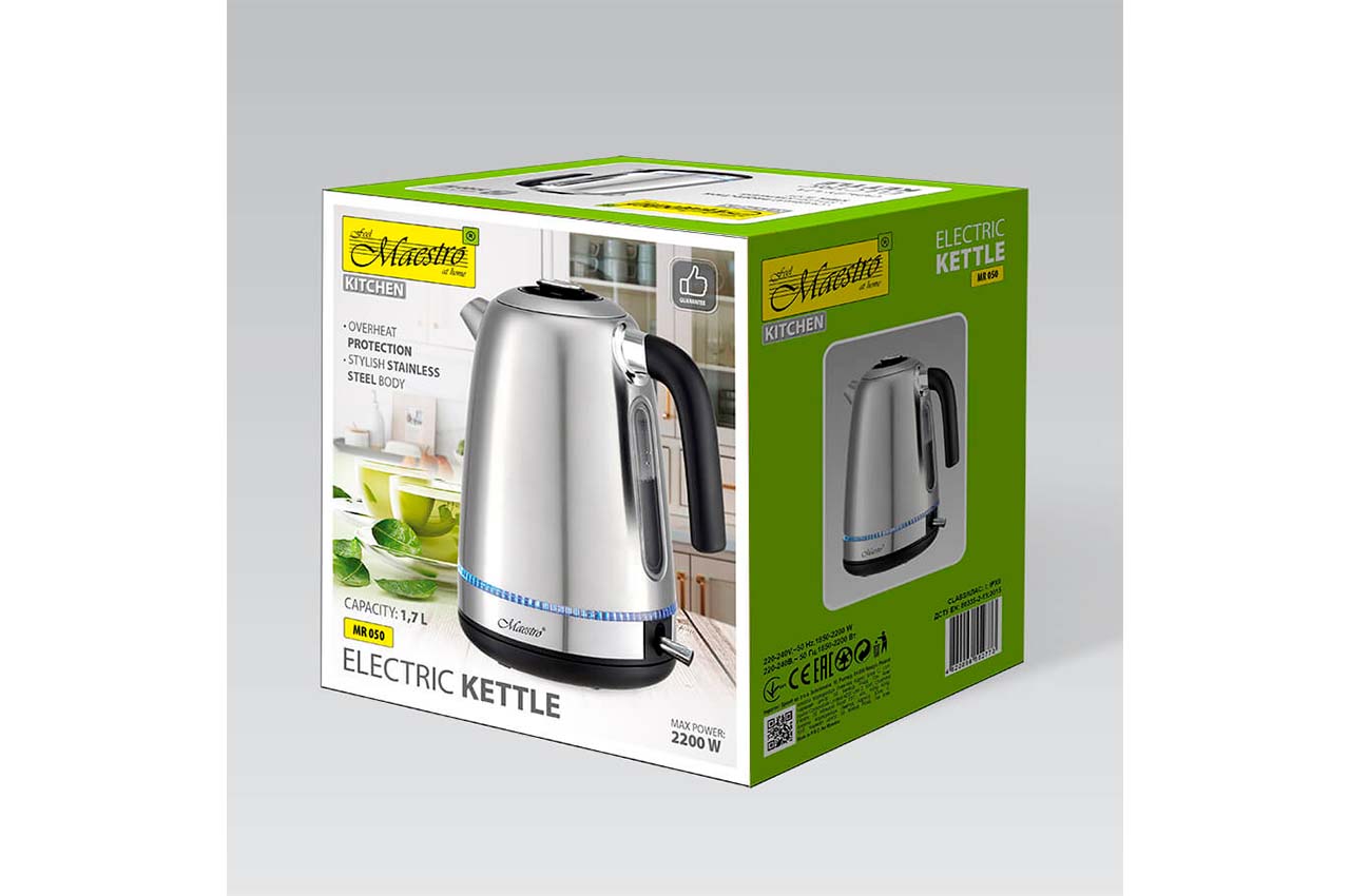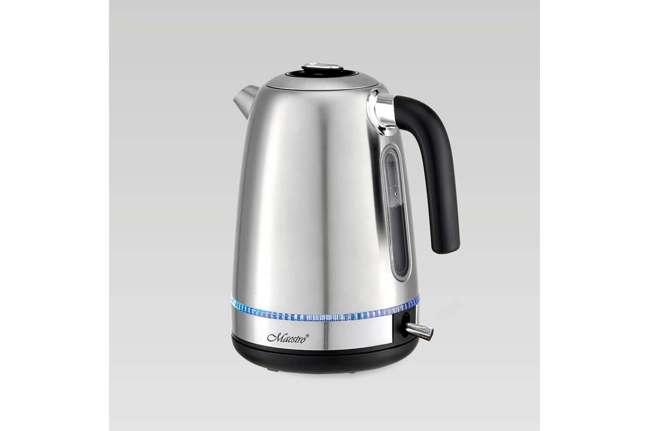 Електрочайник Maestro призначений для нагріву води до кипіння, оснащений функцією автоматичного відключення і захистом від перегріву. Модель має привабливий сучасний дизайн, відрізняється простотою в роботі і догляді. Прихований (дисковий) нагрівальний елемент зменшує утворення накипу і сприяє довгому терміну служби.