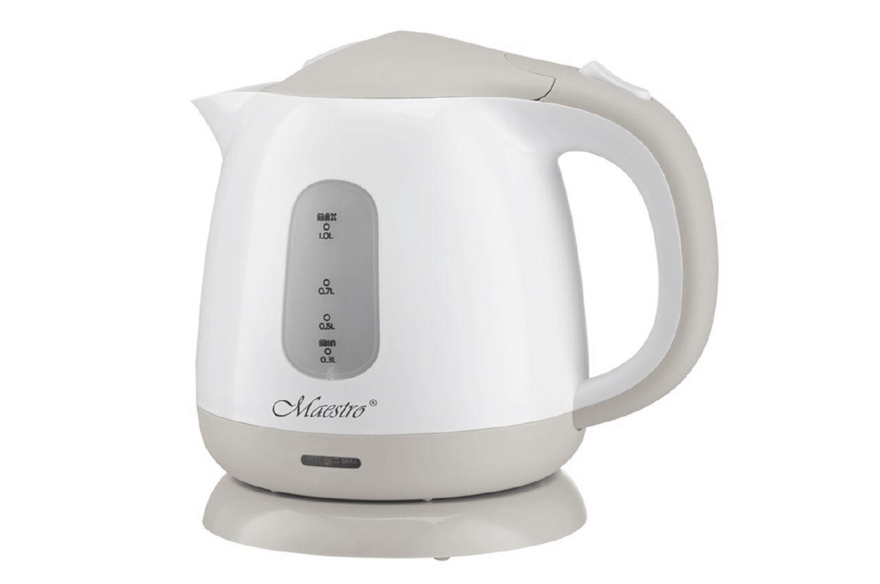 Електрочайник Maestro-MR-012 недорога функціональна модель для дому. Індикатор рівня води дозволить візуально контролювати об'єм та доливати воду за необхідності до потрібної позначки. Показник потужності 1100 Вт не перевищує можливості електромережі, на відміну від потужних моделей. Термостійкий пластиковий корпус не нагрівається, тому ризик отримати опік рук виключено. Об'єму в 1 літр буде достатньо для сім'ї із 3-4 осіб. Плоский нагрівальний елемент, який прихований під корпусом, кип'ятить воду набагато швидше, ніж моделі з Тенамі. Захист від перегріву спрацює, якщо ви випадково забули долити в чайник води.