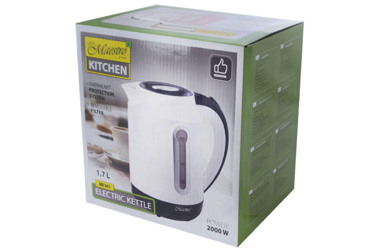 Сучасний ергономічний дизайн, термостійкий пластик, фільтр, шкала рівня води, автоматичне вимикання, індикатор мережі, що обертається корпус на 360 °, захист від перегріву, прихований нагрівальний елемент