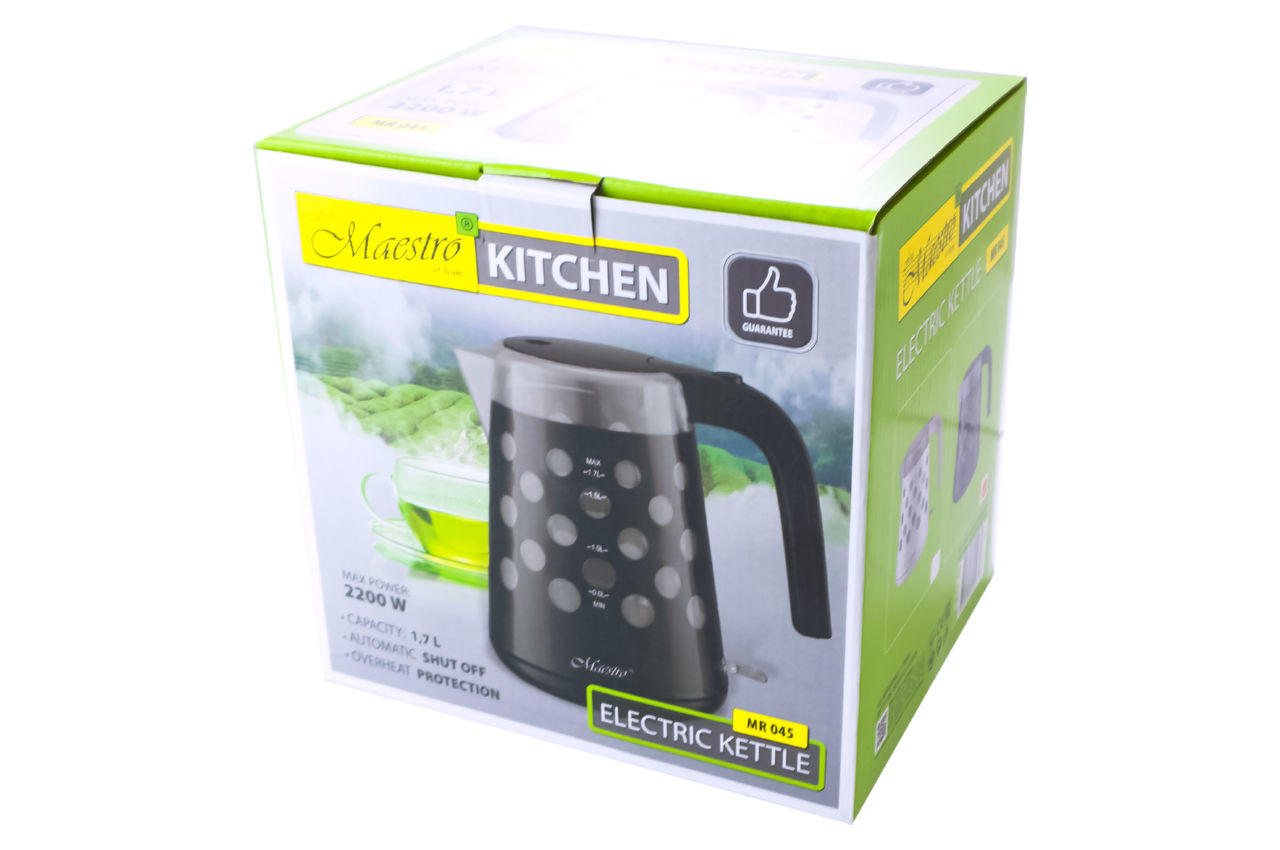 Електрочайник Maestro MR 045 - це стильний та сучасний прилад, який ідеально підходить для будь-якої кухні. Він має низку унікальних характеристик, які роблять його чудовим вибором для будь-якого користувача. Основні переваги електрочайника Maestro MR 045: Потужність 1850-2200 Вт забезпечує швидке закипання води. Дисковий нагрівальний елемент забезпечує рівномірне нагрівання води. Прикритий нагрівальний елемент є безпечним та довговічним. Матеріал корпусу: Термостійкий пластик є міцним та довговічним. Поворот на підставці на 360 ° забезпечує зручність використання. Функція автоматичного вимкнення запобігає перегріву чайника. Захист від перегріву запобігає пошкодженню чайника у разі закипання води без води.