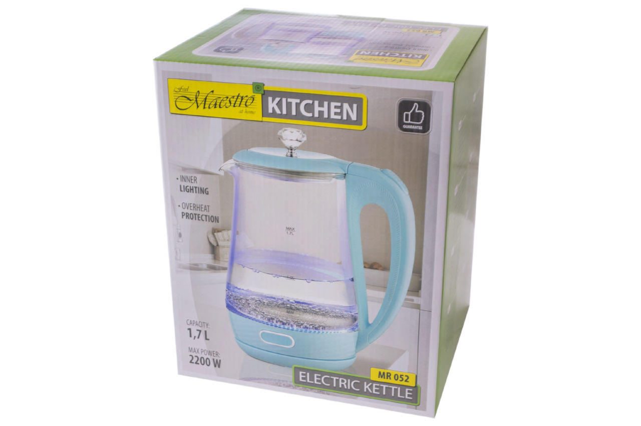 Скляний електричний чайник з підсвічуванням Maestro MR-052 вражає новим оригінальним дизайном. Він стане стильним акцентом на будь-якій кухні та чудовою прикрасою для вашого дому. Чайник Maestro MR 052 дозволить вам насолоджуватися чашкою чаю або кави для себе чи ваших гостей.