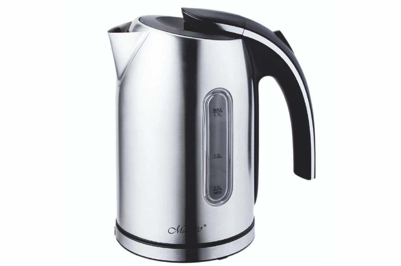 Електрочайник Maestro-MR-059 недорога функціональна модель для дому. Про увімкнення приладу повідомляє індикатор мережі. А індикатор рівня води дозволить візуально контролювати обсяг і доливати воду за необхідності до потрібної позначки. Показник потужності 2000 Вт не перевищує можливості електромережі, на відміну від потужніших моделей. Сучасний ергономічний нержавіючий корпус підкорює своїм полірованим блиском. Об'єму в 1,7 літра вистачить для чаювання великої родини та гостей. Система фільтрації запобігає попаданню дрібних частинок накипу в чашку. Плоский нагрівальний елемент, який прихований під корпусом, кип'ятить воду набагато швидше, ніж моделі з ТЕНами. Захист від перегріву спрацює, якщо ви випадково забули долити у чайник води.