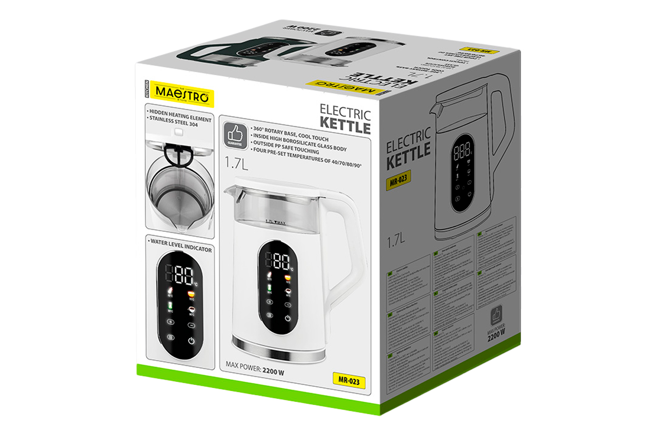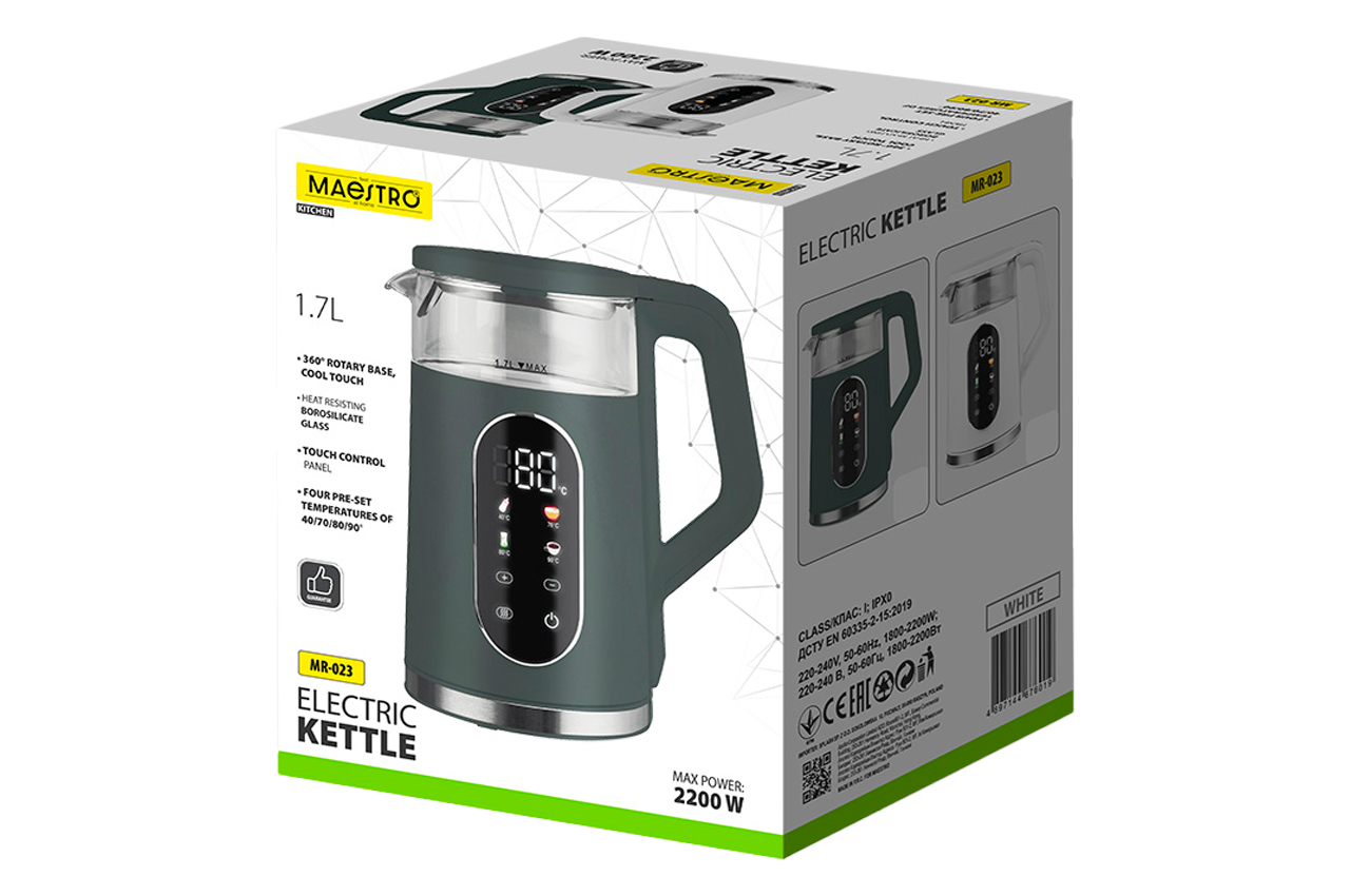 Електрочайник скляний Maestro - 1,7л LED зелений