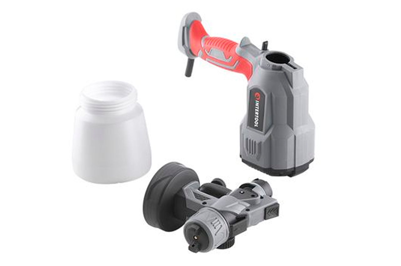 Електричний пістолет DT-5055 (фарбопульт) - це простий та надійний інструмент. За допомогою цього фарбопульта можна здійснювати фарбування будь-яких поверхонь та деталей. Однією з його переваг є рівномірність нанесення фарби на поверхню. Може працювати з різними лакофарбовими матеріалами, рідинами для обробки поверхонь, лаками та ін. Сучасний та практичний електричний фарбопульт DT-5055 має потужність двигуна 550 Вт з продуктивністю до 400 мл/хв. Це без проблем дозволяє впоратися з сумішами, в'язкістю до 80 DIN. Живлення здійснюється від звичайної побутової електромережі з напругою/частотою струму 230/50 Гц. Завдяки системі HVLP здійснюється ефективне перенесення лакофарбового матеріалу на поверхню з мінімальною втратою матеріалу. Відмінно підходить для виконання повсякденних побутових завдань.
