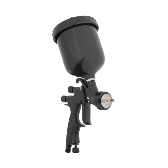 Фарбопульт PT-0168 професійного рівня, використовується для різних фарбувальних робіт, ідеально підходить для фарбування різних поверхонь, деталей, автомобілів, меблів, обладнання та ін. Дозволяє якісно та швидко обробити будь-яку поверхню різними ЛФМ. Фарбувальний пістолет виготовлений за технологією HVLP, тобто працює з великим об’ємом споживаного повітря та низьким тиском, завдяки чому досягається 75% ефективність перенесення ЛФМ на поверхню та економно витрачаються дорогі матеріали. Пістолет має чотири налаштування, що дозволяє вам більш точно відрегулювати подачу повітря, подачу фарби, ширину та форму факела. Щільний, однорідний факел, шириною від 26 до 30 см, забезпечує рівномірність нанесення матеріалу. Фарборозпилювач оснащений пластиковим бачком об’ємом 600 мл. Для ефективної роботи необхідне джерело стисненого повітря (компресор), здатне підтримувати в системі тиск до 8 атм, з продуктивністю від 300 л/хв й більше. Шланг подачі повітря повинен мати діаметр 6-10 мм.