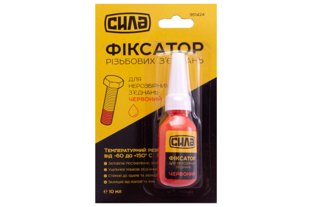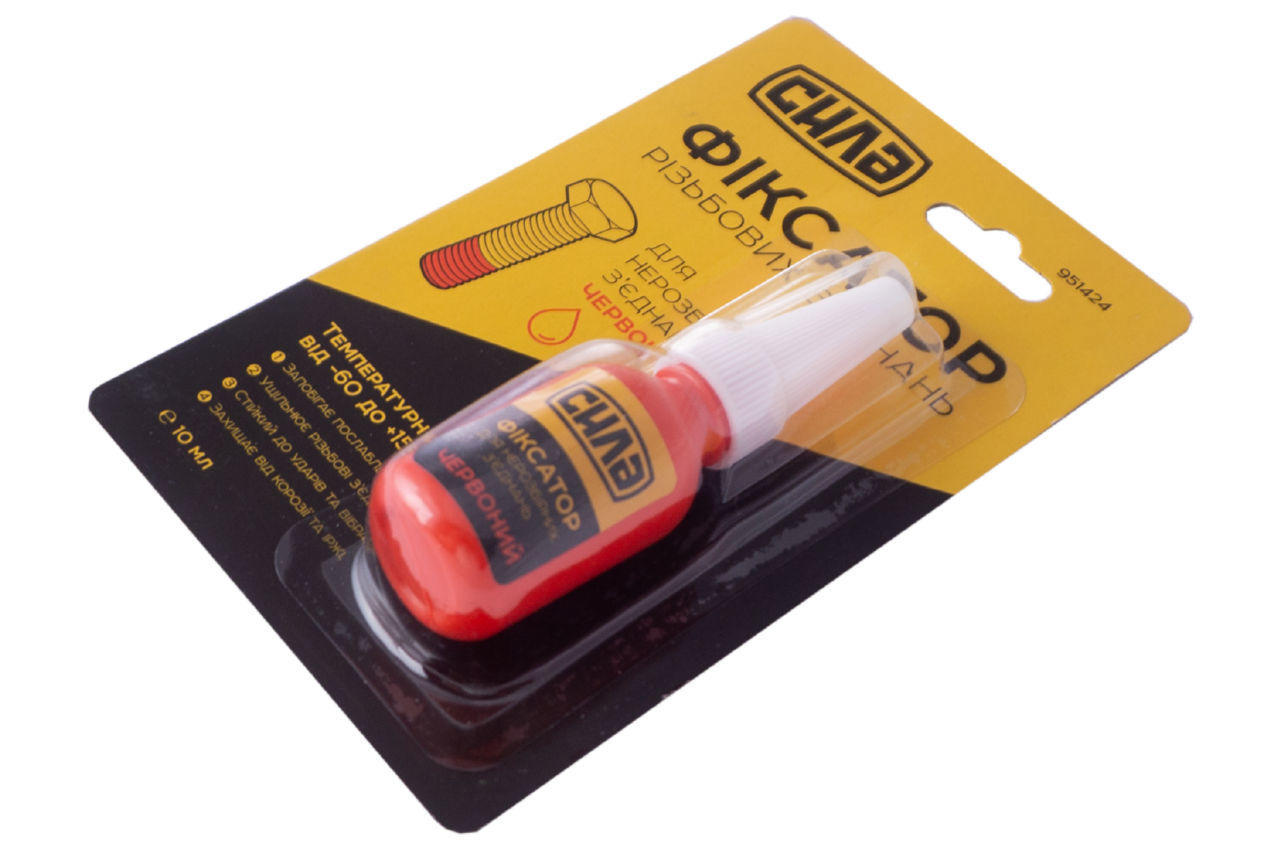 Фіксатор різьби для нерозбірних з'єднань Сила - 10г червоний. Використовується для фіксації та герметизації різьби. Захищає різьбу від іржі та корозії і запобігає ослабленню різьбових з'єднань від вібрації.