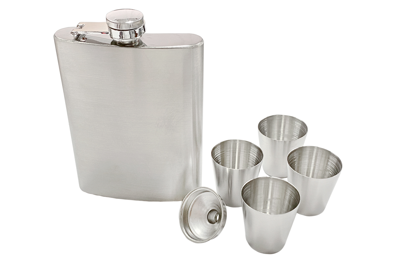 Фляга із нержавіючої сталі, з лійкою 200мл та 4 чарки х 25мл