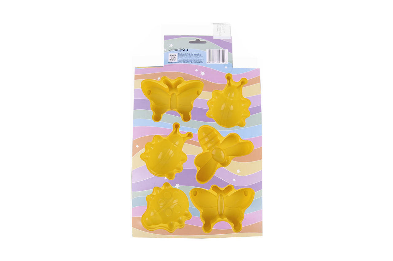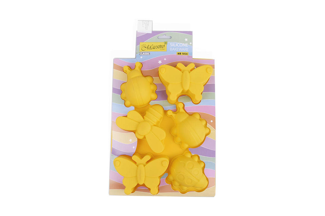 Силіконова форма для випічки Maestro MR 1054 з фігурними краями призначена для приготування 6 мафінів у формі комах: метеликів, бджіл, сонечок. Форма проста у використанні, легко миється, пружні краї силіконової форми дозволяють зручно отримувати готову продукцію.