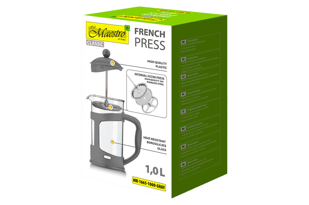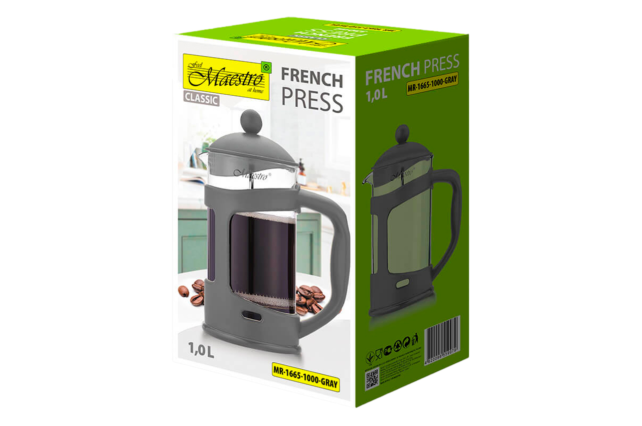 Френч-прес Maestro - 1000мл I пластик сірий