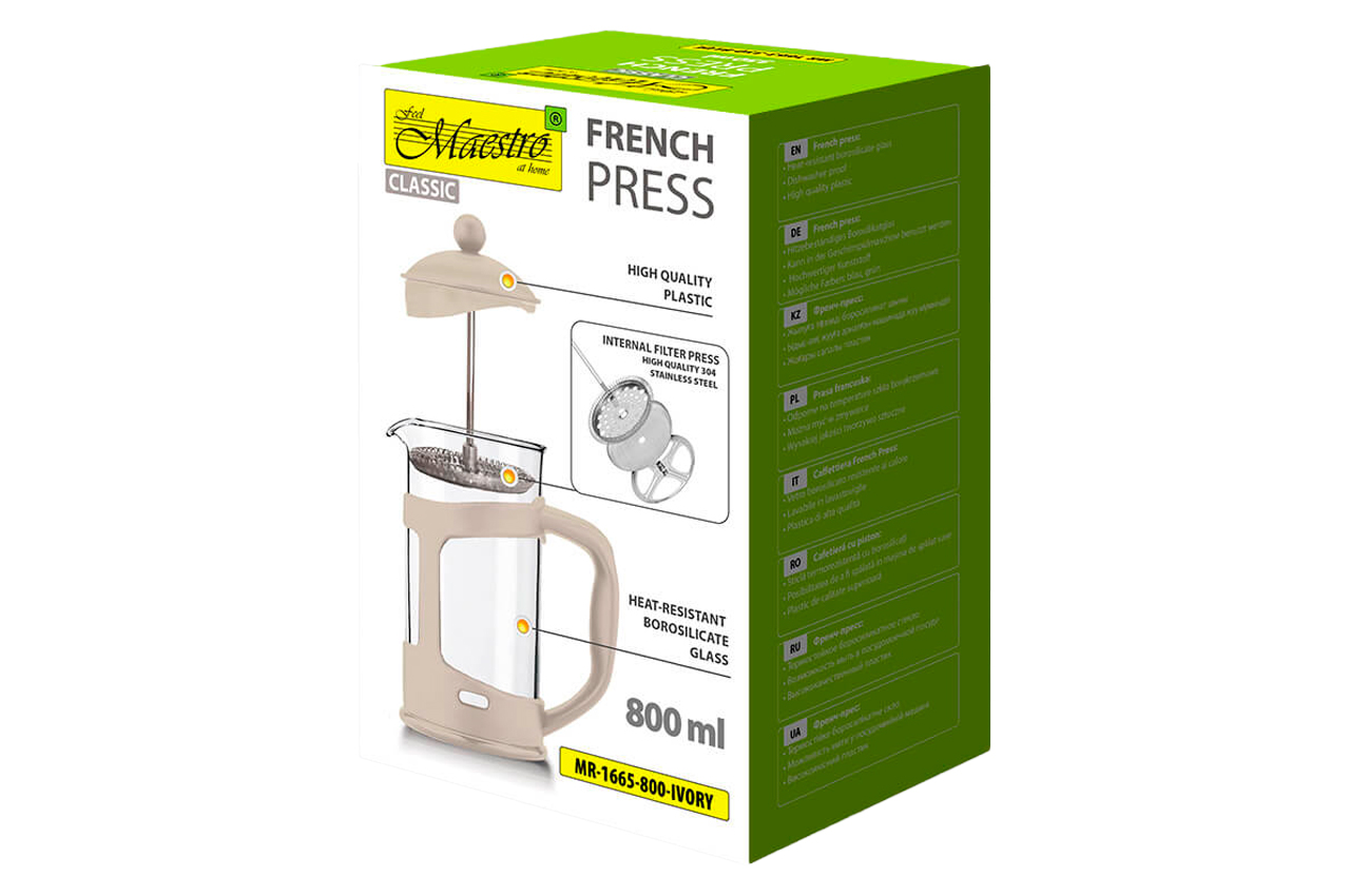 Френч-прес Maestro - 800мл I пластик слонова кістка