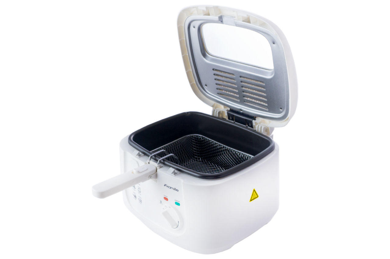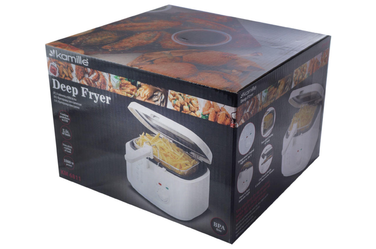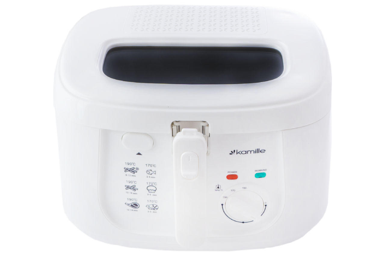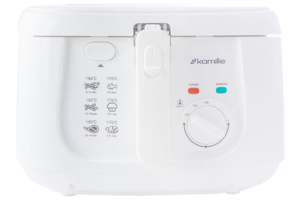 Фритюрниця Kamille - це пристрій, завдяки якому ви зможете швидко і смачно приготувати картоплю фрі, крильця, цибульні кільця, пончики. Цікавий дизайн і простота використання - його найбільші переваги! Можна з упевненістю сказати, що кожен з нас любить цей вид закусок, і завдяки нашому продукту вся сім'я зможе насолодитися ними! Смажені закуски - слабкість багатьох гурманів. Немає нічого краще, ніж хрустка картопля, картопля фрі з солодкої картоплі або гострі крильця, які зроблять зустрічі з друзями, вечірнє кіно або матч улюбленої команди ще більш приємними. Люди, які люблять солодке, оцінять зручність смаження своїх улюблених пончиків або млинців. Більше не потрібно використовувати різні каструлі , розмір яких ніколи не задовольняє нас повністю. Просте керування роботою. Сучасна фритюрниця, безсумнівно, допоможе нам на кухні. Пристрій оснащений фільтром проти запаху в кришці, який усуне небажані запахи з кухні і всієї квартири. Всі необхідні перемикачі і ручки розташовані в легко доступному місці на пристрої. Регульований термостат дозволяє контролювати температуру смаження. Контрольна лампа (червона) інформує про роботу пристрою.