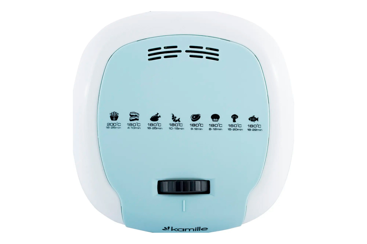 Мультипіч Kamille KM-6814 виконана в корпусі з білого пластику. На передній частині розташовані регулятори, за допомогою яких ви можете вибрати температуру і функцію для подальшої роботи. Аэрофритюрница вирішує питання з жирними продуктами, які готуються в маслі або жирі – вона працює без додавання подібних продуктів. Модель включає мультизадачність у вигляді 8 програм, вбудованих у пристрій. Ви зможете смажити, запікати, випікати, гасити, підігрівати, підтримувати тепло та користуватися функцією гриля. За рахунок того, що жири не використовуються, вдалося досягти мінімальної кількості запахів і диму при приготуванні будь-яких продуктів з використанням обраної функції.