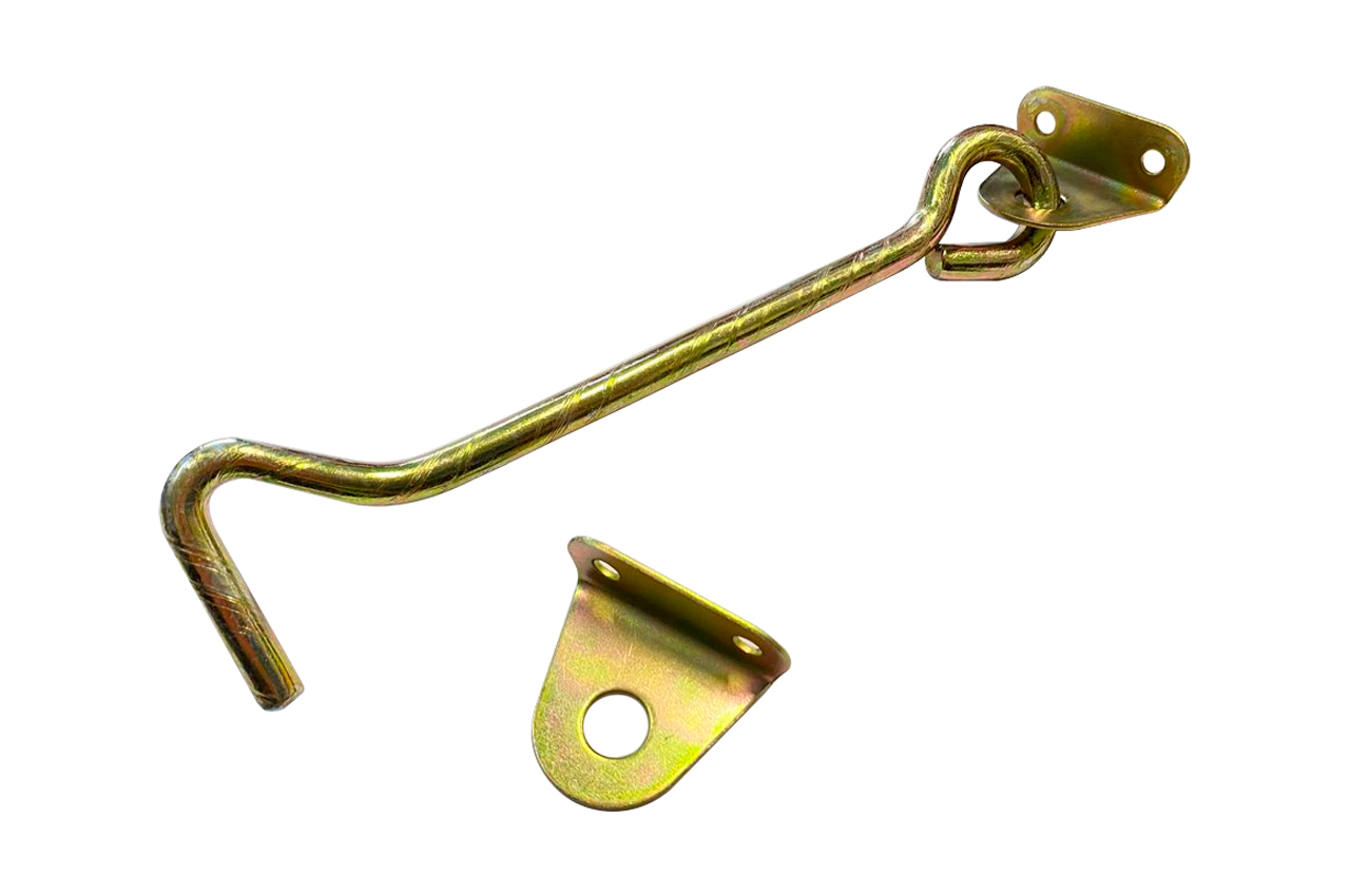 Гачок дверний KS-UKR - це міцний і зручний елемент для надійної фіксації хвірток, воріт, дверей сараю або віконниць. Виготовлений з оцинкованого металу, стійкого до корозії, що дозволяє використовувати його як в приміщеннях, так і на вулиці. Діаметр гачка становить 8 мм, довжина — 200 мм, що забезпечує високу надійність фіксації навіть для великих або важких конструкцій. Проста установка та універсальне застосування роблять цей гачок практичним рішенням для дому, дачі чи господарства.
