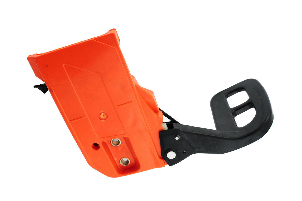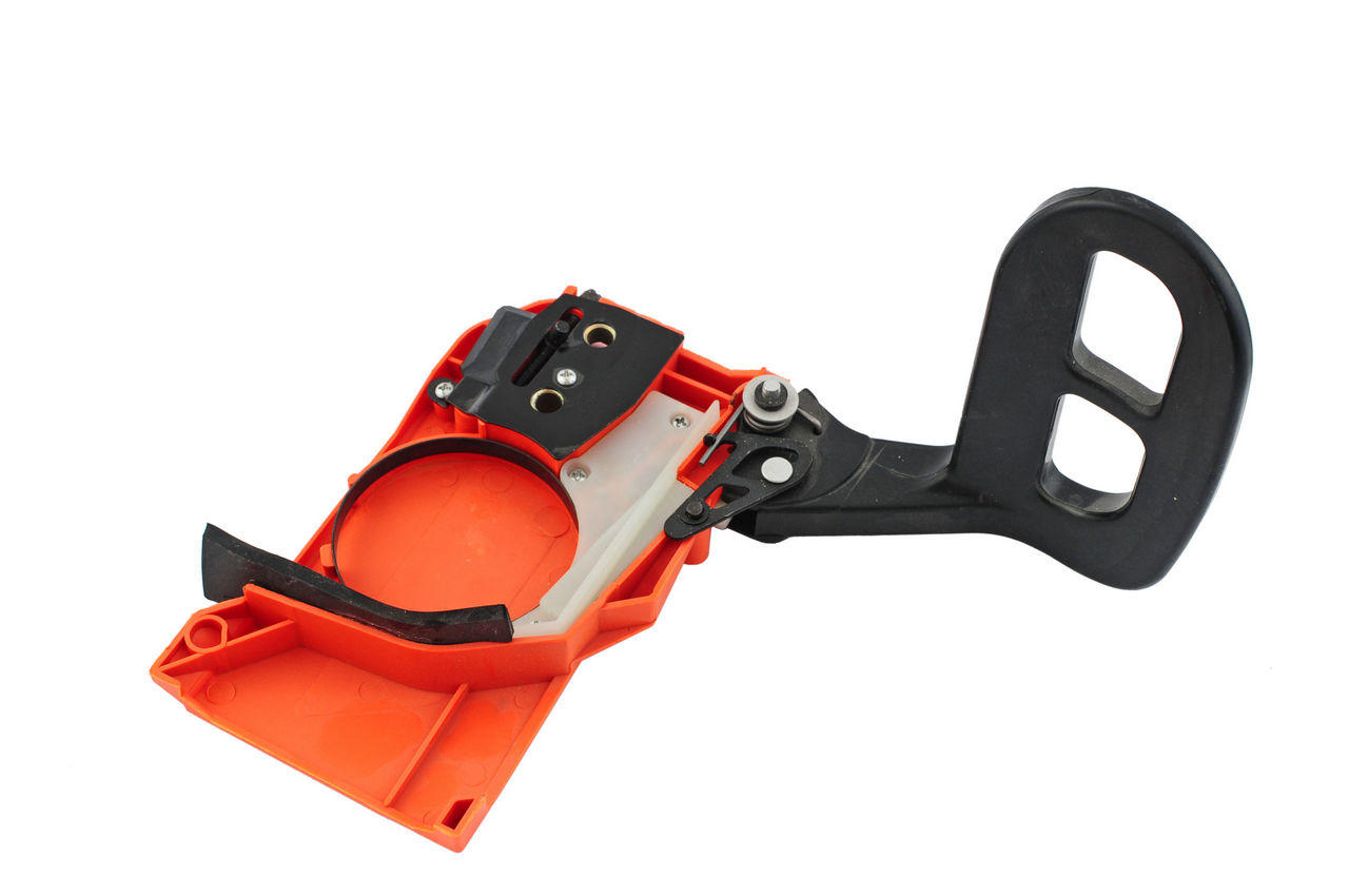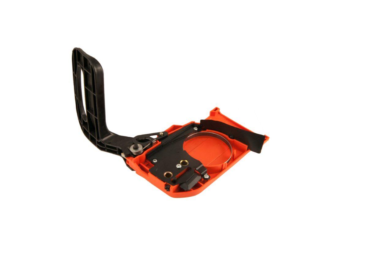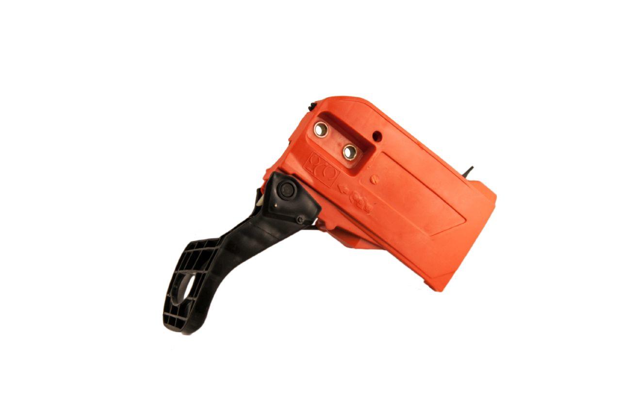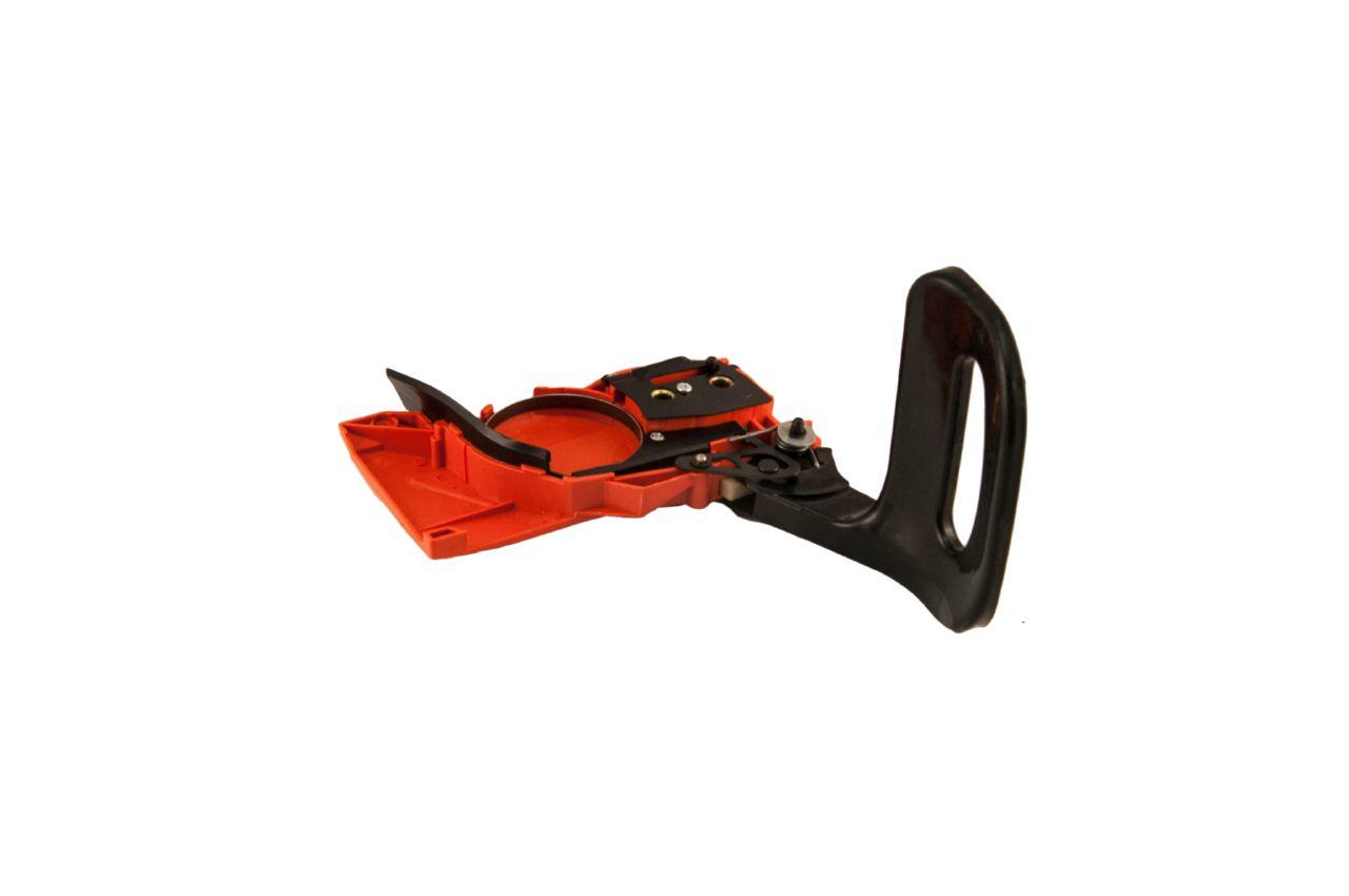 Ручка гальма в зборі виготовлена з пластмаси з металевими деталями. Усередині ручки встановлені пружини і натягувач ланцюга. Основне призначення ручки гальма це в екстрених ситуаціях миттєво зупиняти ланцюг. Так само ручка гальма виконує функцію захисту. У даній ручці є натягувач ланцюга (прямого типу) для натягу або ослаблення натяжки ланцюга.