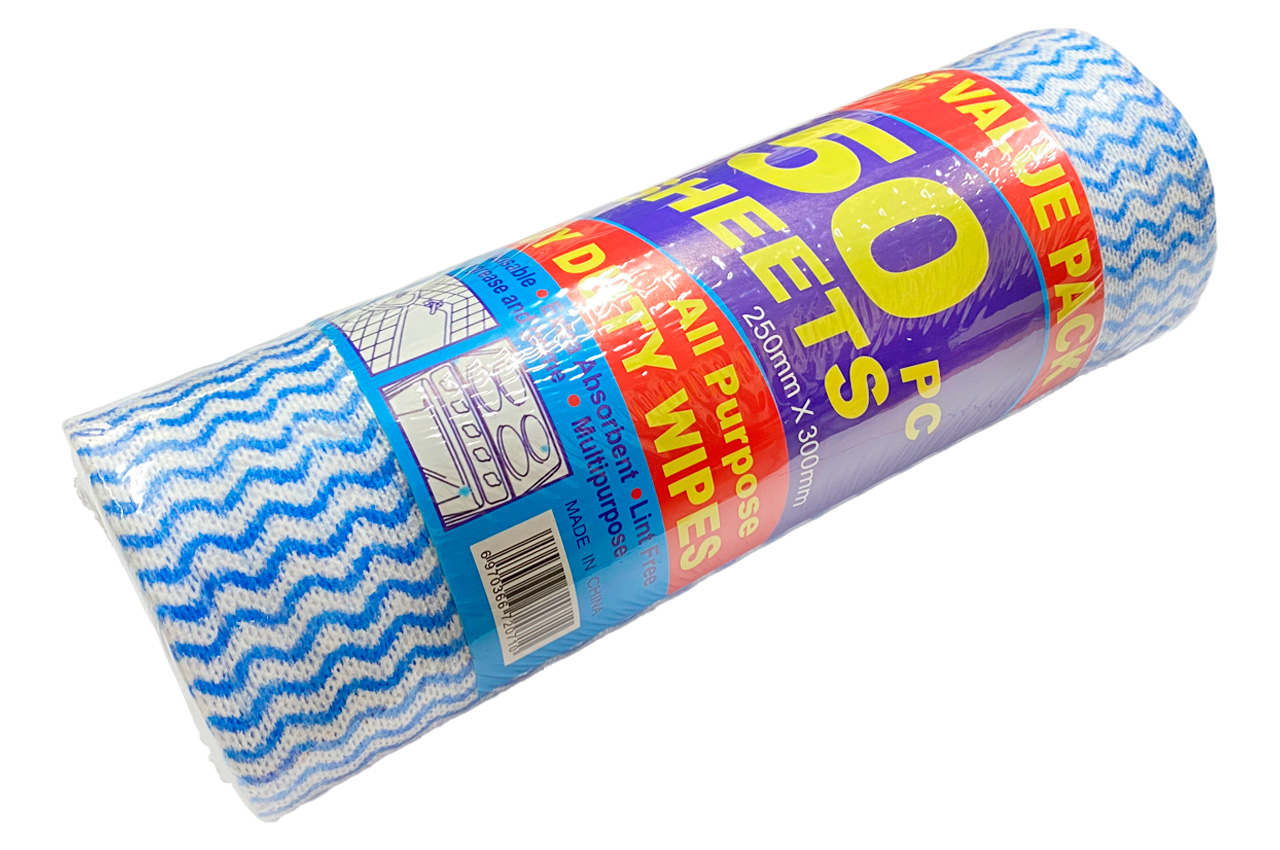Універсальні бавовняні ганчірки в рулоні, розмір однієї – 250 х 300 мм. У наборі 50 відривних шматків. Виготовлені з натуральної бавовни, добре вбирають вологу та підходять для сухого і вологого прибирання. Зручні для використання на кухні, у побуті та на виробництві.