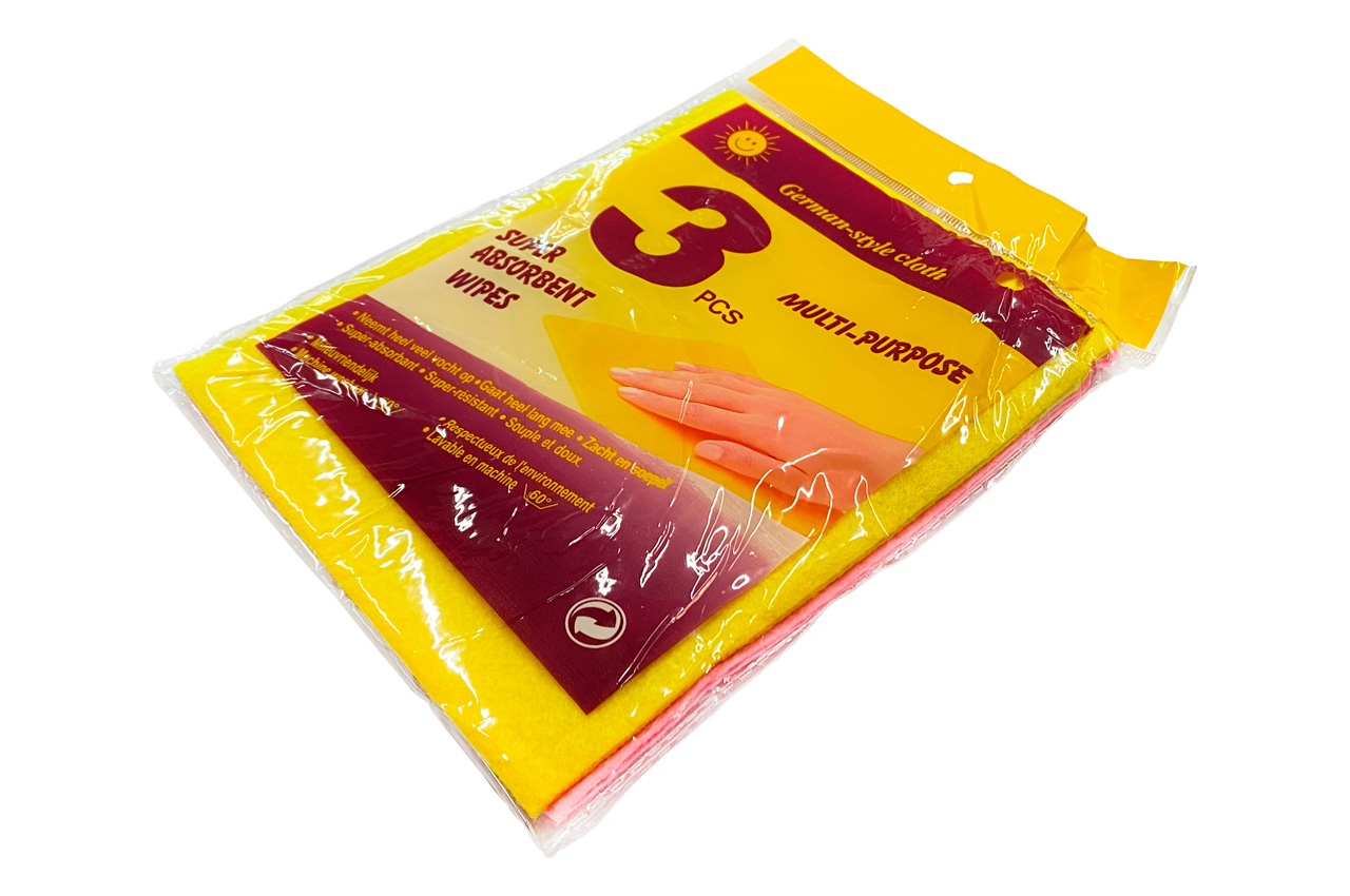 Універсальні віскозні ганчірки розміром 310 х 380 мм у наборі з 3 штук. Призначені для сухого та вологого прибирання. Добре вбирають вологу, легко відмивають забруднення та не залишають розводів. Підходять для кухні, ванної кімнати, меблів, скла, посуду та інших поверхонь.