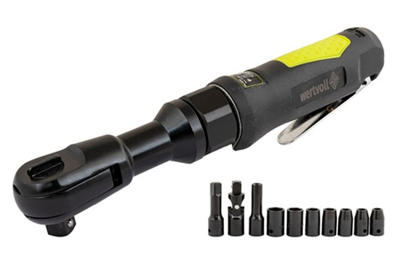 Гайковерт кутовий пневматичний Vertwoll - 1/2" набір головок. Використовується для роботи з невеликими кріпленнями в місцях з обмеженим доступом, заміни або переміщення радіаторів, свічок запалювання, встановлення та ремонту кондиціонерів та водних помп. • функція реверса • сталева кутова головка та легкий алюмінієвий корпус • TPR накладка зменшує вібрації • перехідник на швидкознімне з’єднання 1/4’’ • монтаж та демонтаж різьбових з’єднань з великим зусиллям в обмеженому просторі