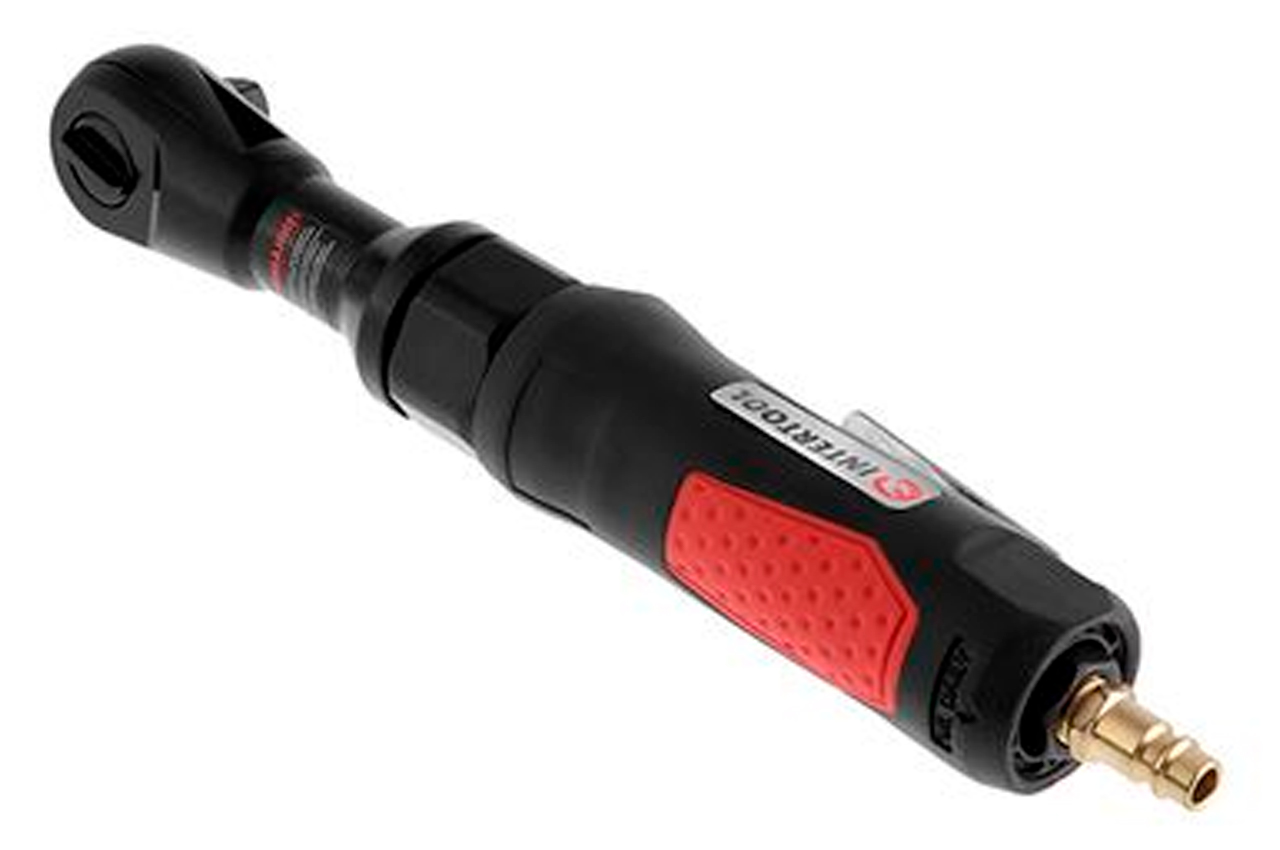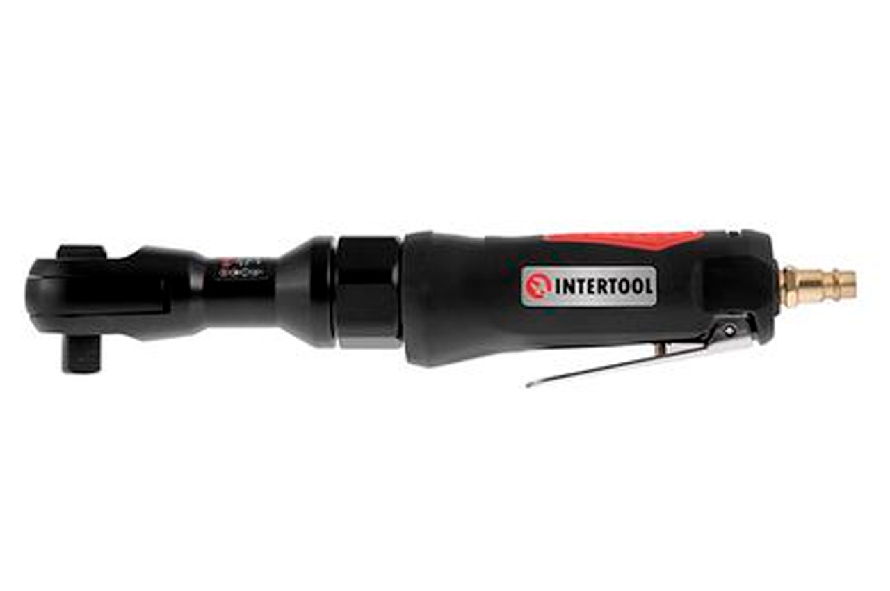 Кутовий гайковерт використовується для роботи з невеликими кріпленнями в місцях з обмеженим доступом. Це якісна і надійна модель, яка здатна передати максимальне зусилля в 69 Нм. Швидкість обертання даного гайковерта становить 160 об / хв, а робочий тиск досягає 6 атм. Гайковерт має повністю металевий корпус з пусковим механізмом у формі пластини. Квадрат - 1/2 ". Гайковерт поставляється в зручному кейсі і комплектується набором головок (9, 10, 11, 13, 14, 17 і 19 мм), біт (3 шт.), Подовжувач 1/2", кардан 1/2 ". Робочий тиск: до 6 атм; Максимальне зусилля: 69 Нм; Квадрат: 1/2"; Швидкість обертання: 160 об / хв; Наявність реверсу: так; Витрата повітря: 120 л / хв; Діаметр шланга: 8-10 мм; Вхідний повітряний отвір: 1/2 "; Покриття рукоятки: гума