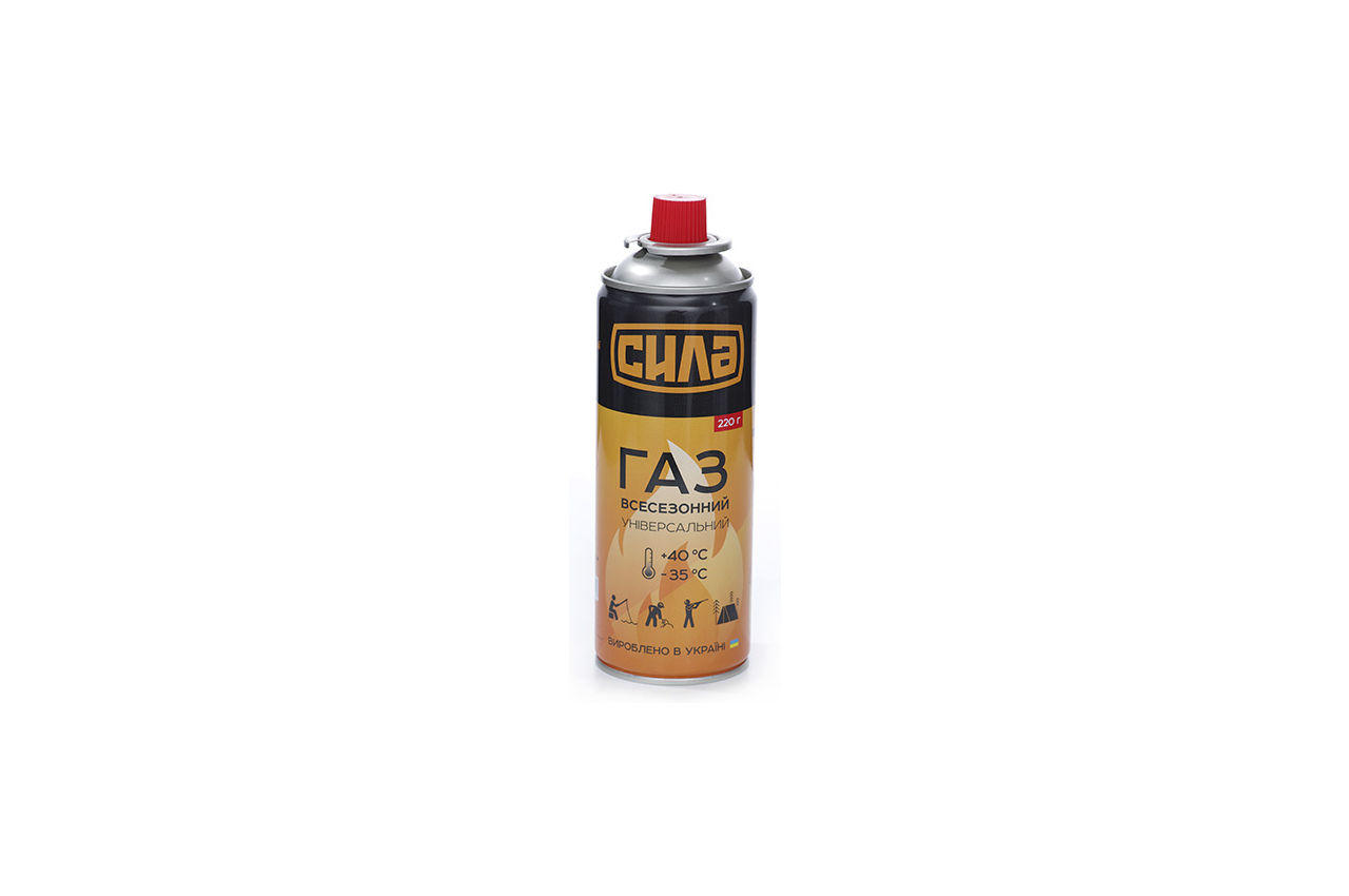 Газовий балон цанговий 220г СИЛА для газових пальників, паяльних та освітлювальних ламп, плит та обігрівачів. Газ всесезонний універсальний Температура зберігання та експлуатації: +40 -35 градусів. Склад: Бутан-75%, Ізобутан-20%, Пропан-5%.